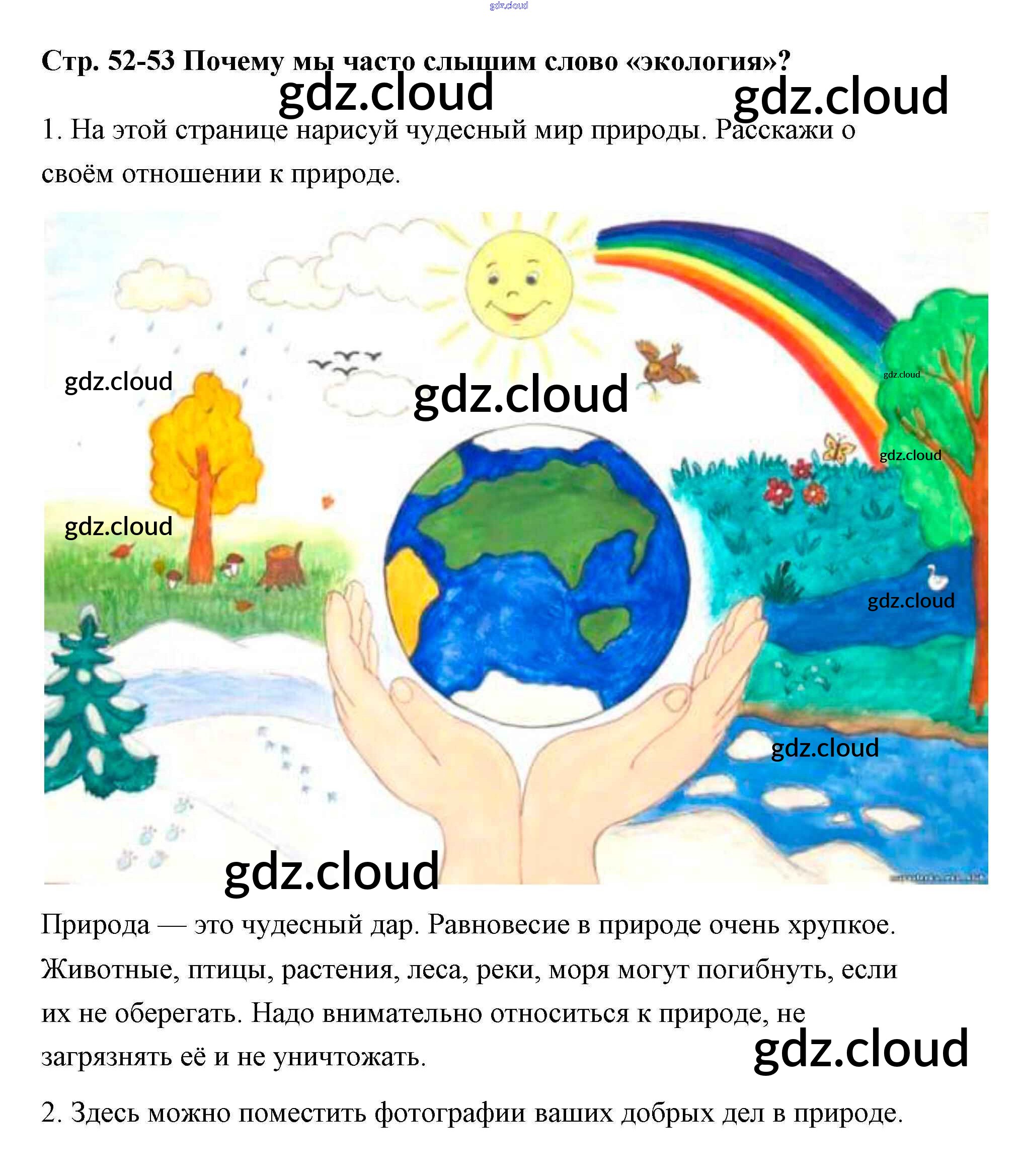 Ответ на задание 52-53 Рабочая тетрадь Окружающий мир за 1 (первый) класс Плешаков Школа России 2016 Часть 1, 2