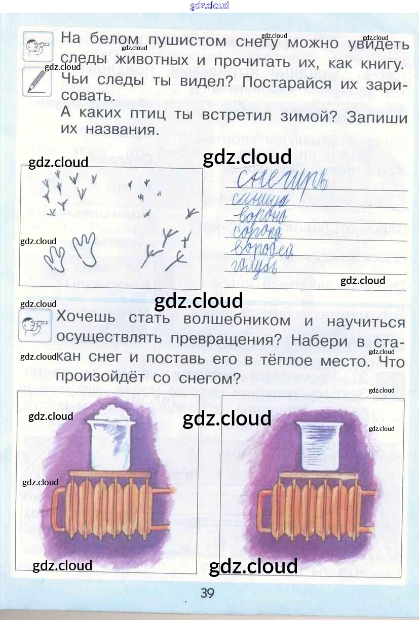 Ответ на задание стр.39 Рабочая тетрадь Окружающий мир за 1 (первый) класс Вахрушев, Бурский, Раутиан Школа 2100 2015 ФГОС онлайн и без номера телефона.