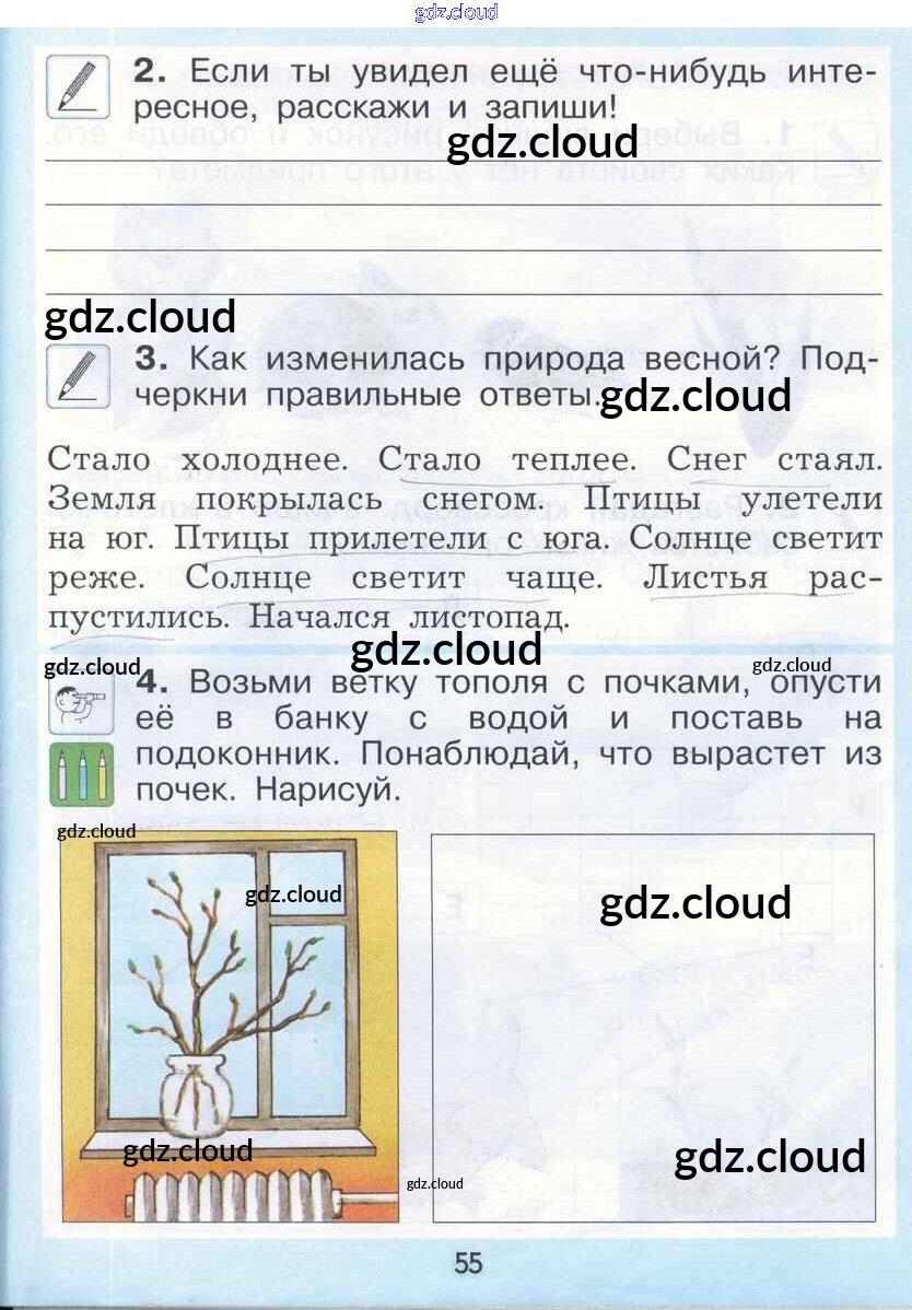 Ответ на задание стр.55 Рабочая тетрадь Окружающий мир за 1 (первый) класс Вахрушев, Бурский, Раутиан Школа 2100 2015 ФГОС онлайн и без номера телефона.