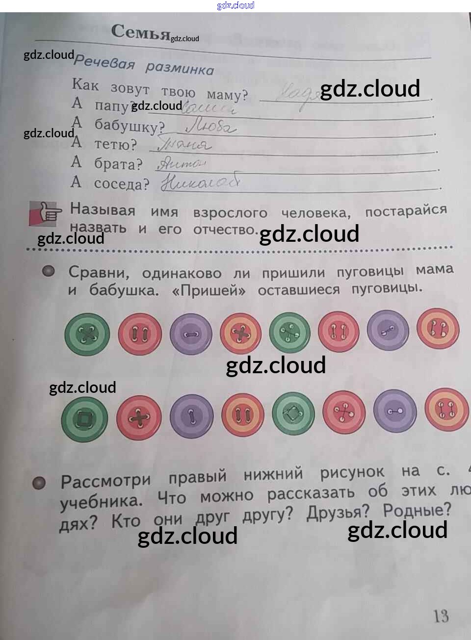 Ответ на задание стр.13 Рабочая тетрадь Окружающий мир за 1 (первый) класс Виноградова Начальная школа XXI века 2017