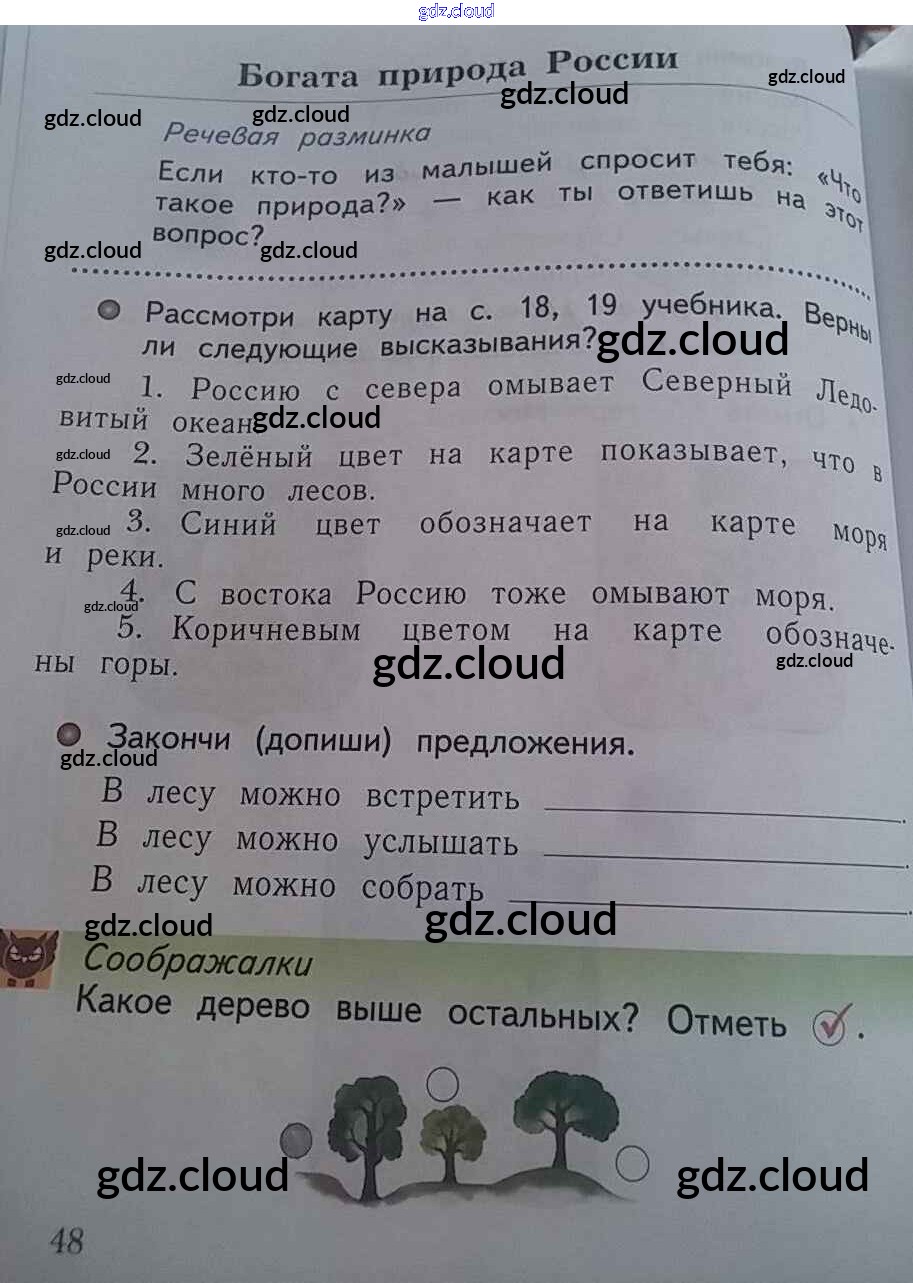 Ответ на задание стр.48 Рабочая тетрадь Окружающий мир за 1 (первый) класс Виноградова Начальная школа XXI века 2017