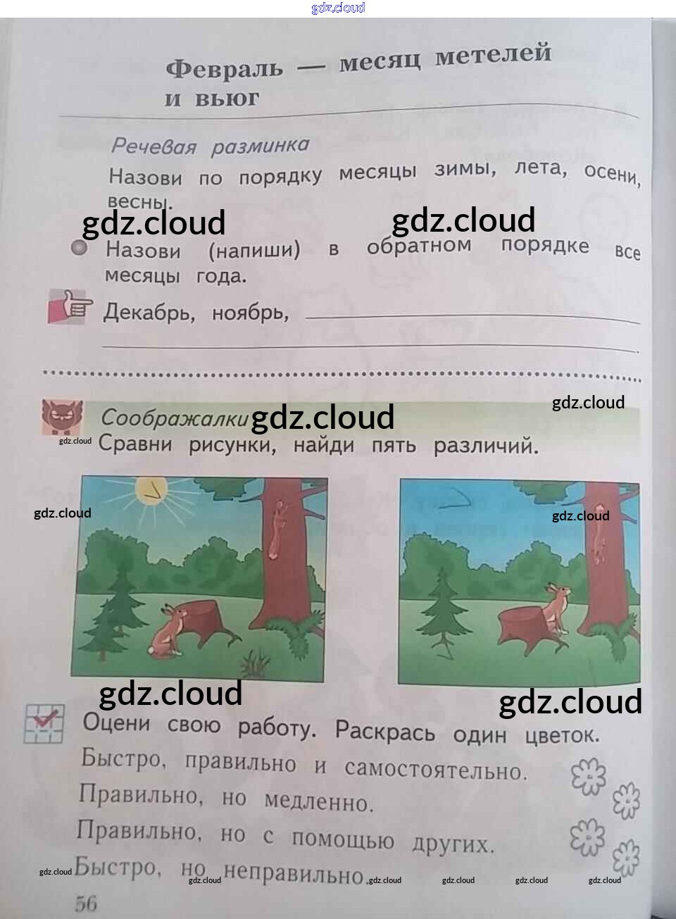 Ответ на задание стр.56 Рабочая тетрадь Окружающий мир за 1 (первый) класс Виноградова Начальная школа XXI века 2017
