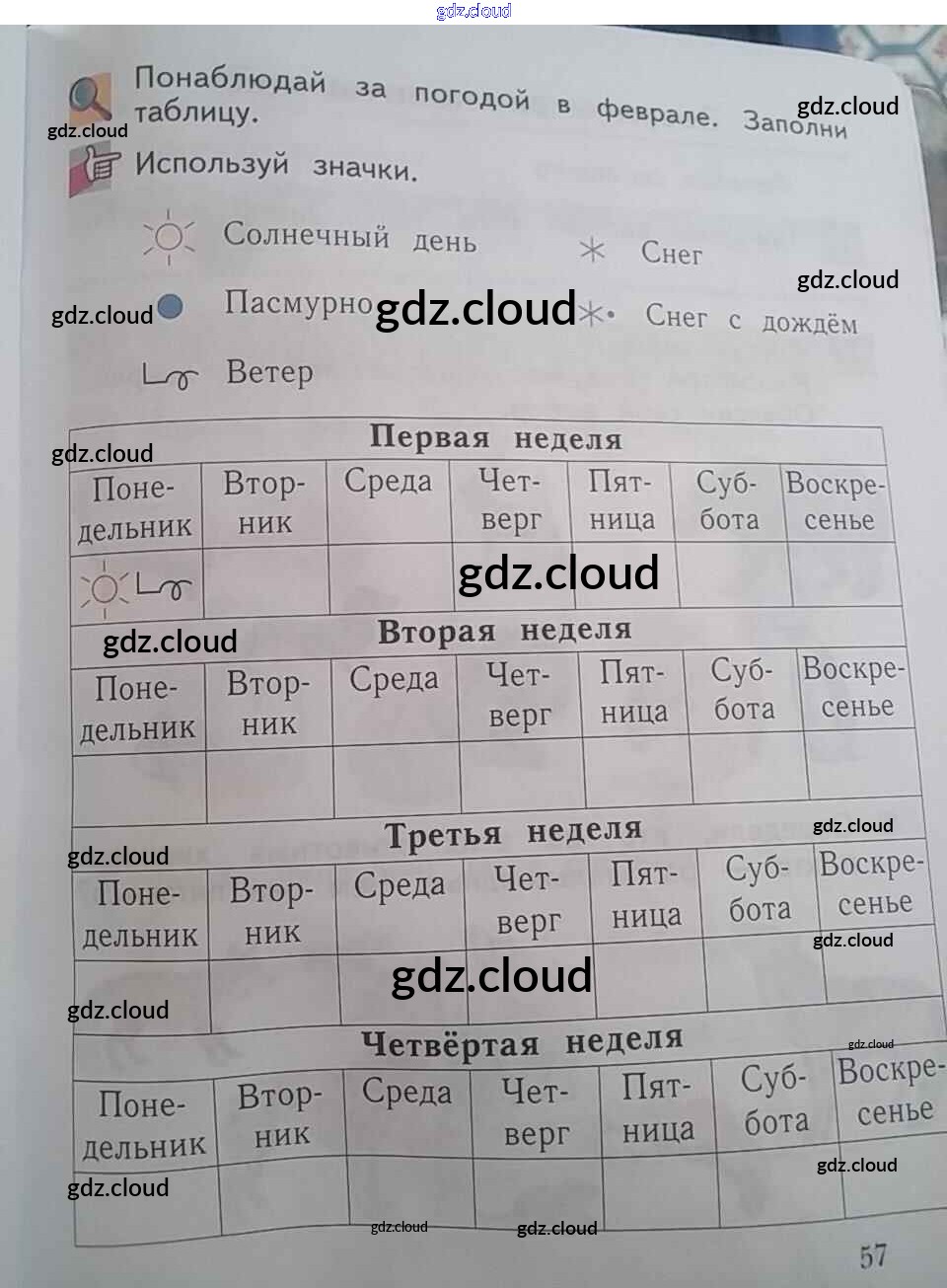 Ответ на задание стр.57 Рабочая тетрадь Окружающий мир за 1 (первый) класс Виноградова Начальная школа XXI века 2017