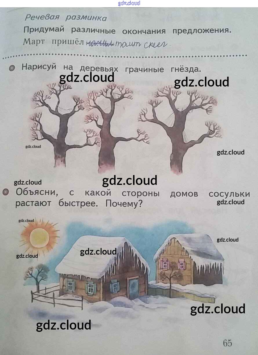 Ответ на задание стр.65 Рабочая тетрадь Окружающий мир за 1 (первый) класс Виноградова Начальная школа XXI века 2017