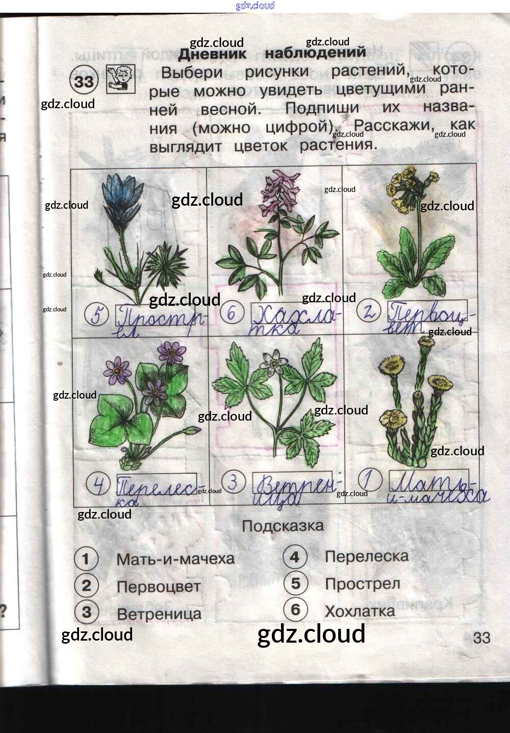 Ответ на задание 33 Тетрадь для самостоятельной работы Окружающий мир за 1 (первый) класс Федотова, Трафимов, Трафимова Перспективная начальная школа 2016