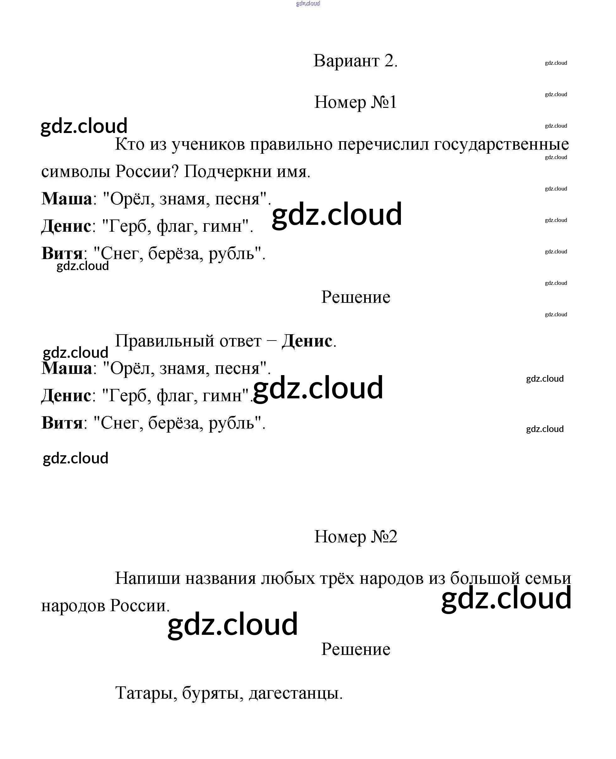 Ответы к проверочным работам 2 (Варианты) по Окружающему миру 2 класс Проверочные работы Плешаков Школа России Просвещение