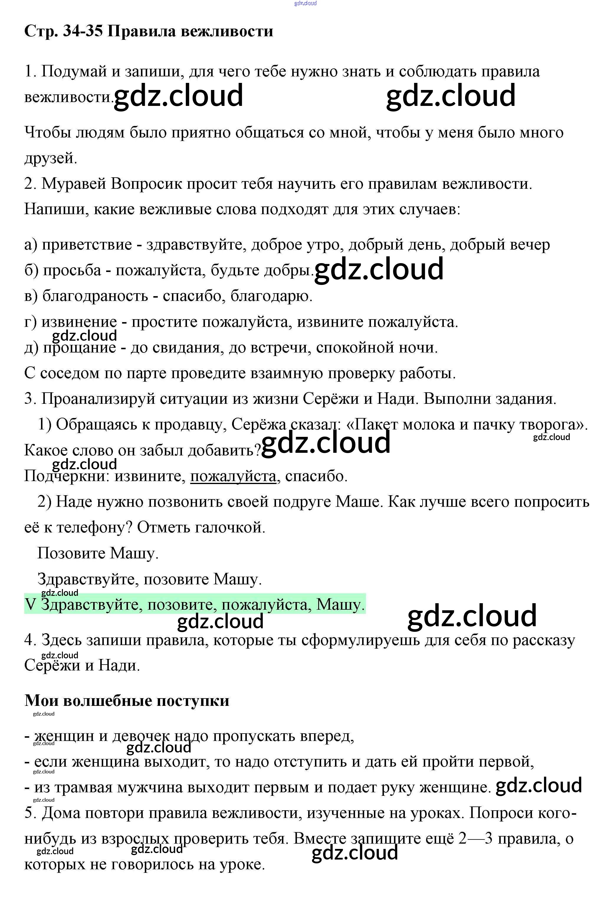 Ответ на задание 34 Рабочая тетрадь Окружающий мир за 2 (второй) класс Плешаков Школа России 2016 Часть 1, 2