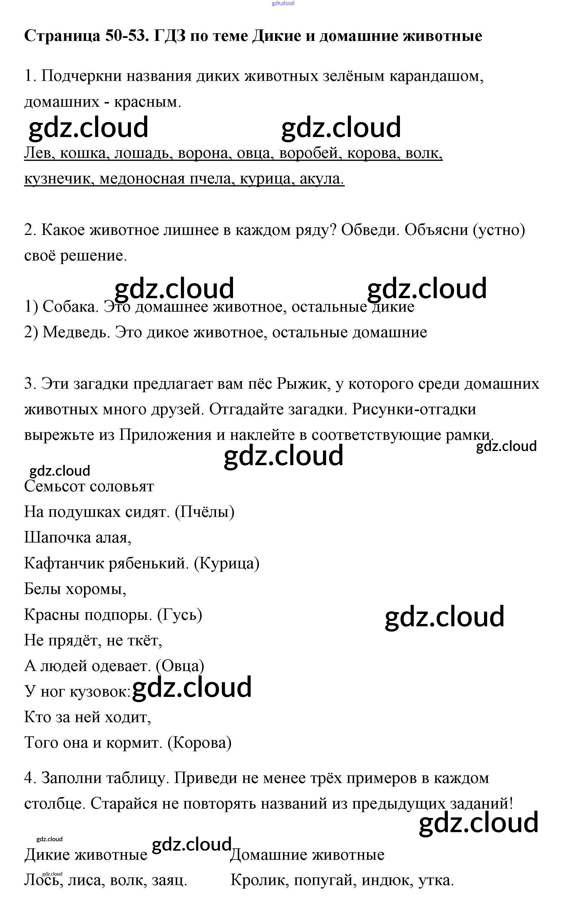 Ответ на задание 50-53 Рабочая тетрадь Окружающий мир за 2 (второй) класс Плешаков Школа России 2016 Часть 1, 2