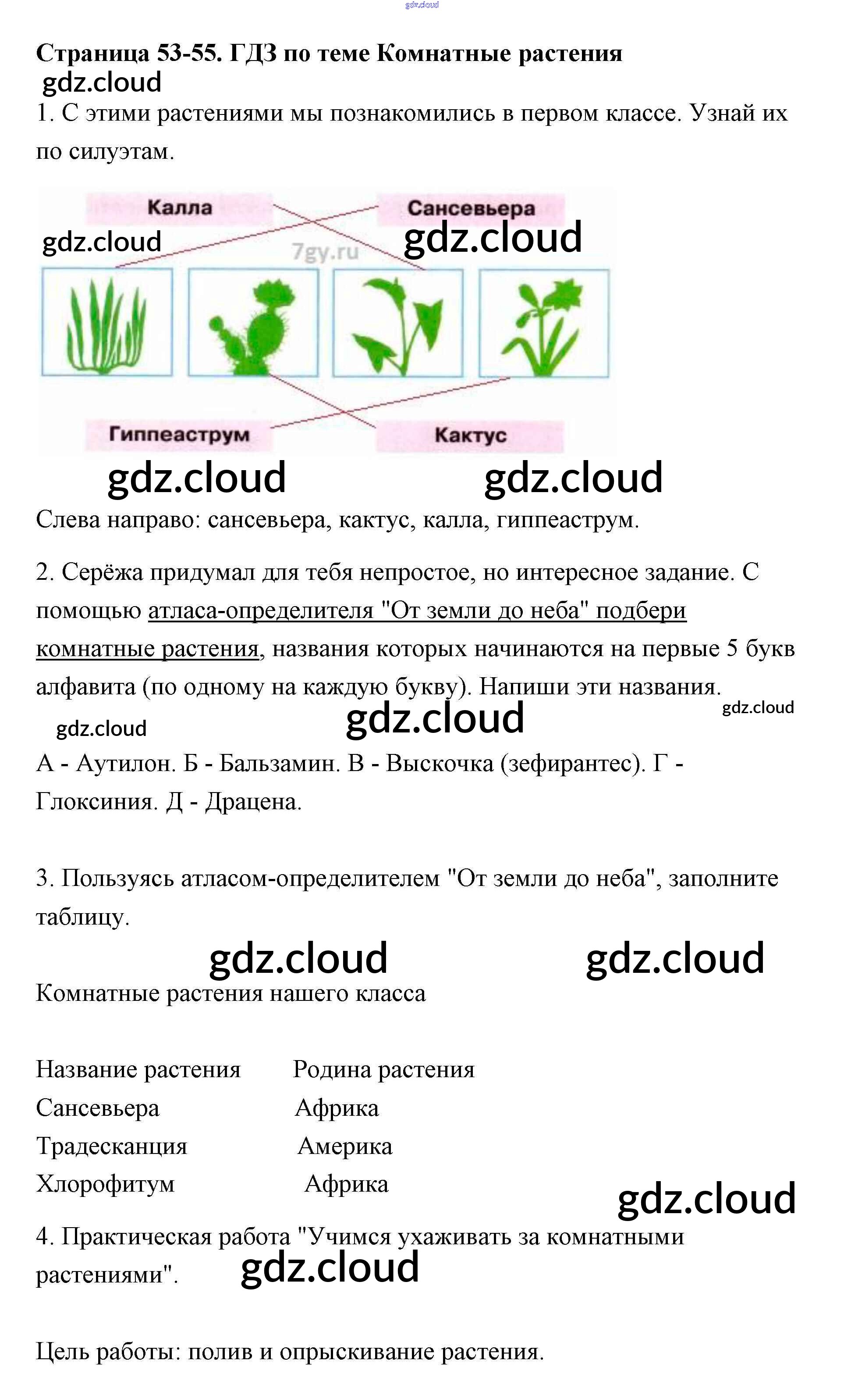 Ответ на задание 53-55 Рабочая тетрадь Окружающий мир за 2 (второй) класс Плешаков Школа России 2016 Часть 1, 2