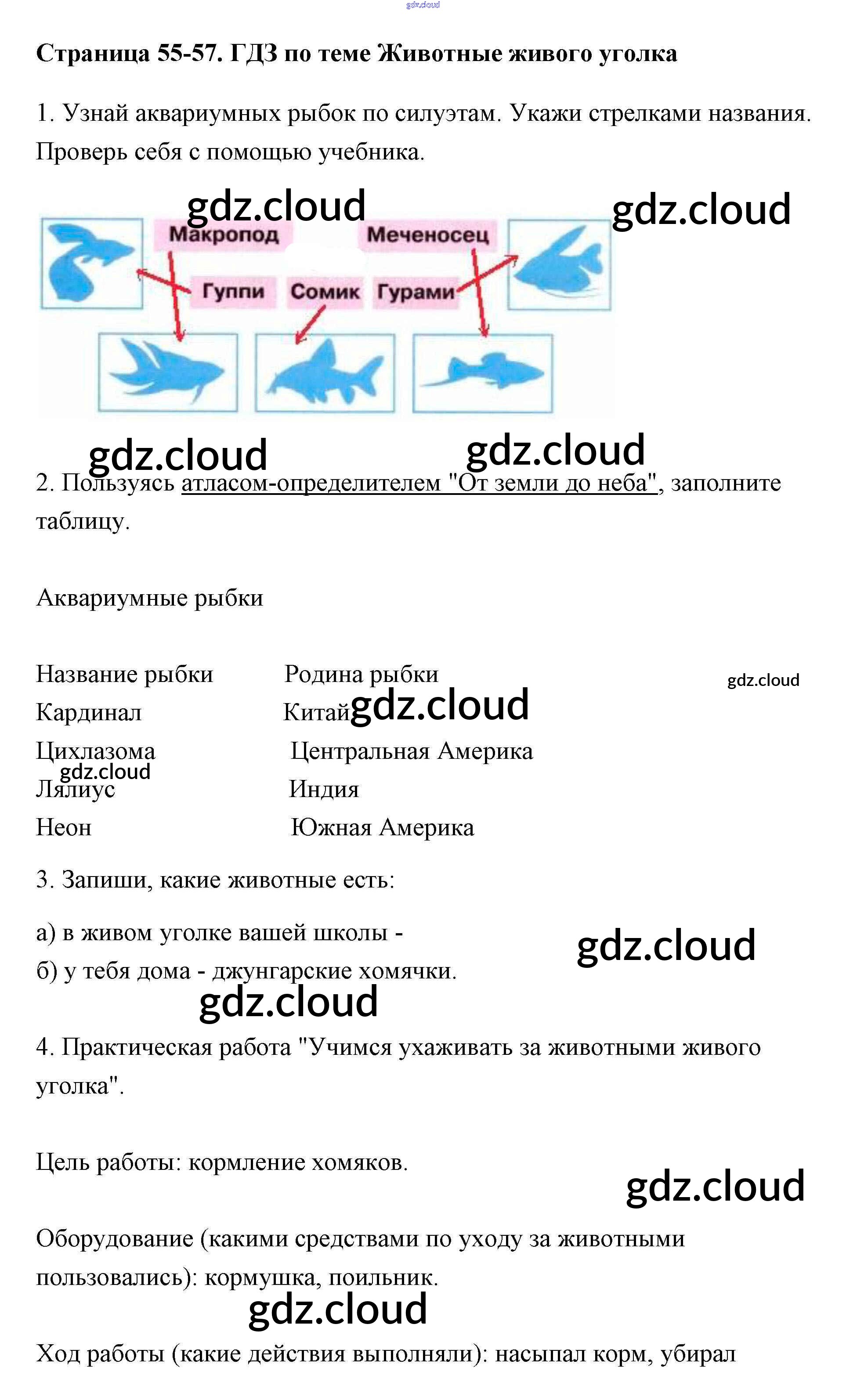 Ответ на задание 55-57 Рабочая тетрадь Окружающий мир за 2 (второй) класс Плешаков Школа России 2016 Часть 1, 2