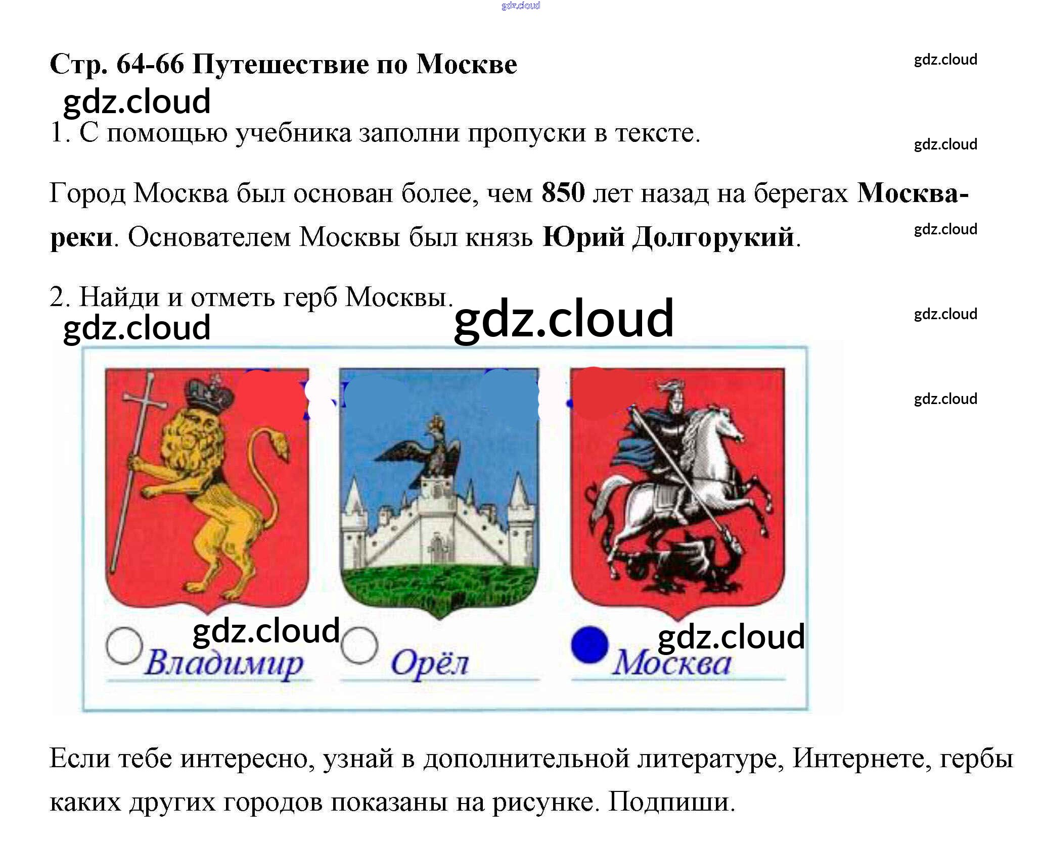 Ответ на задание 64-66 Рабочая тетрадь Окружающий мир за 2 (второй) класс Плешаков Школа России 2016 Часть 1, 2
