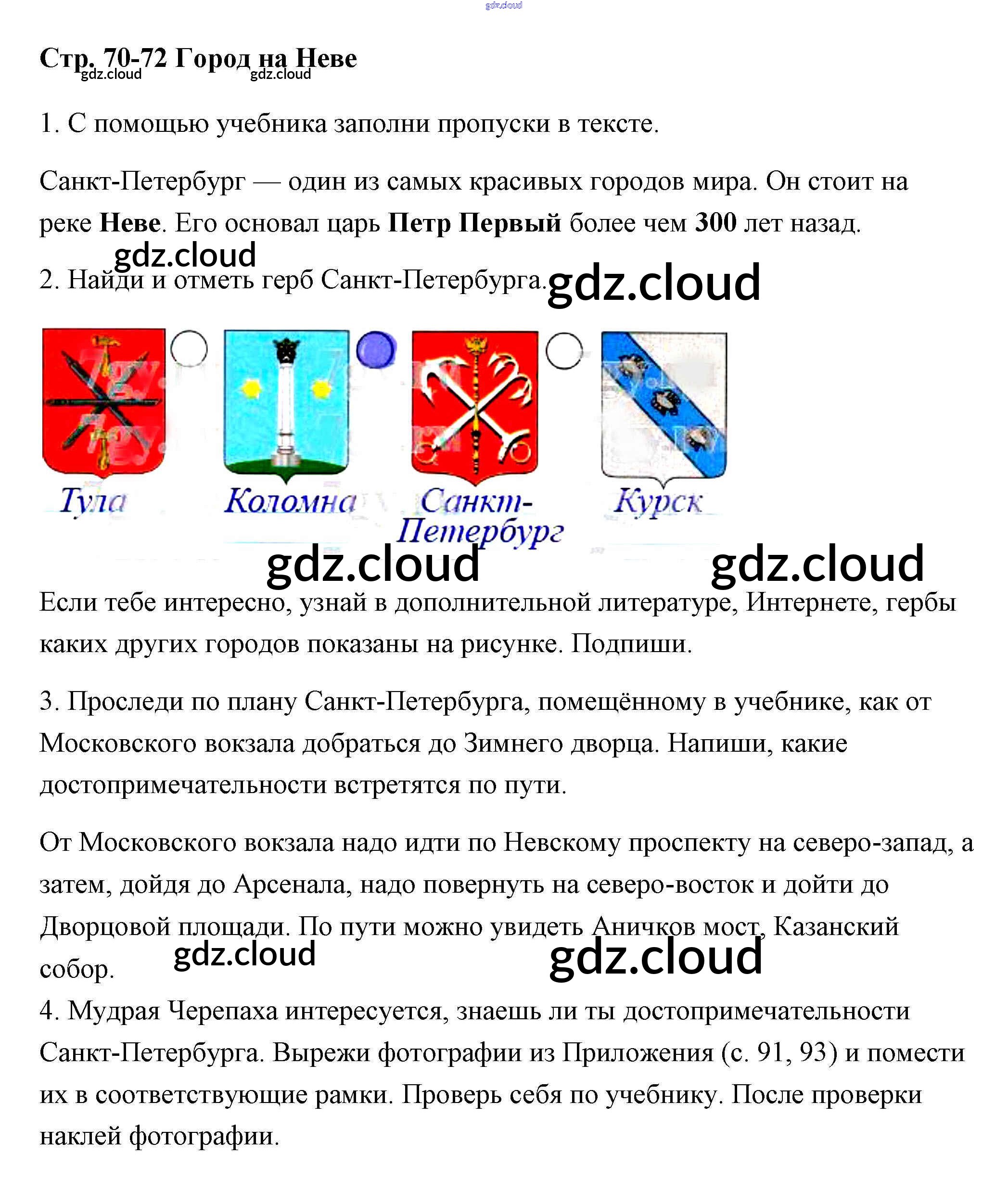 Ответ на задание 70-72 Рабочая тетрадь Окружающий мир за 2 (второй) класс Плешаков Школа России 2016 Часть 1, 2