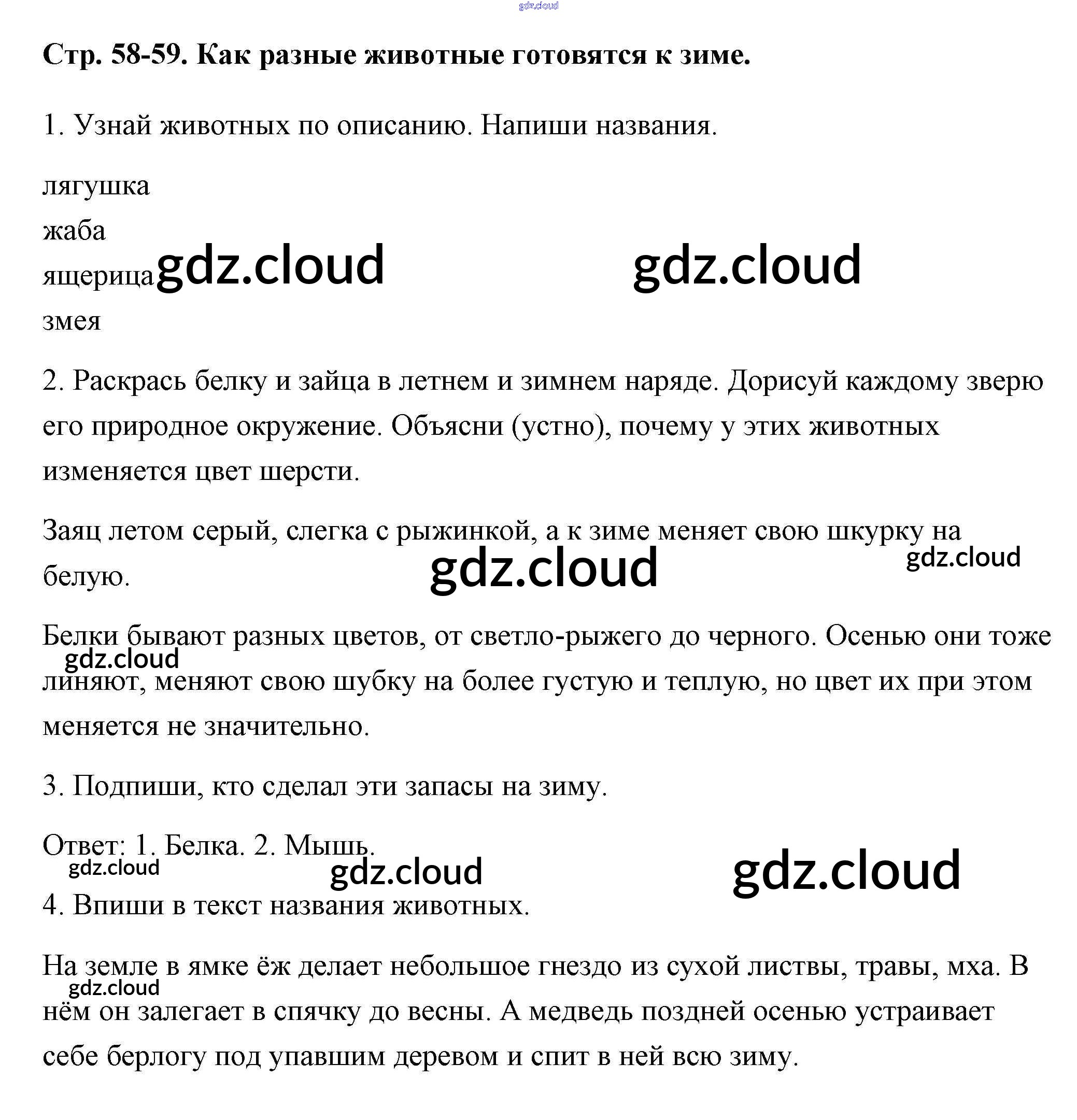 Ответ на задание 58-59 Рабочая тетрадь Окружающий мир за 2 (второй) класс Плешаков, Новицкая Перспектива 2017 Часть 1, 2