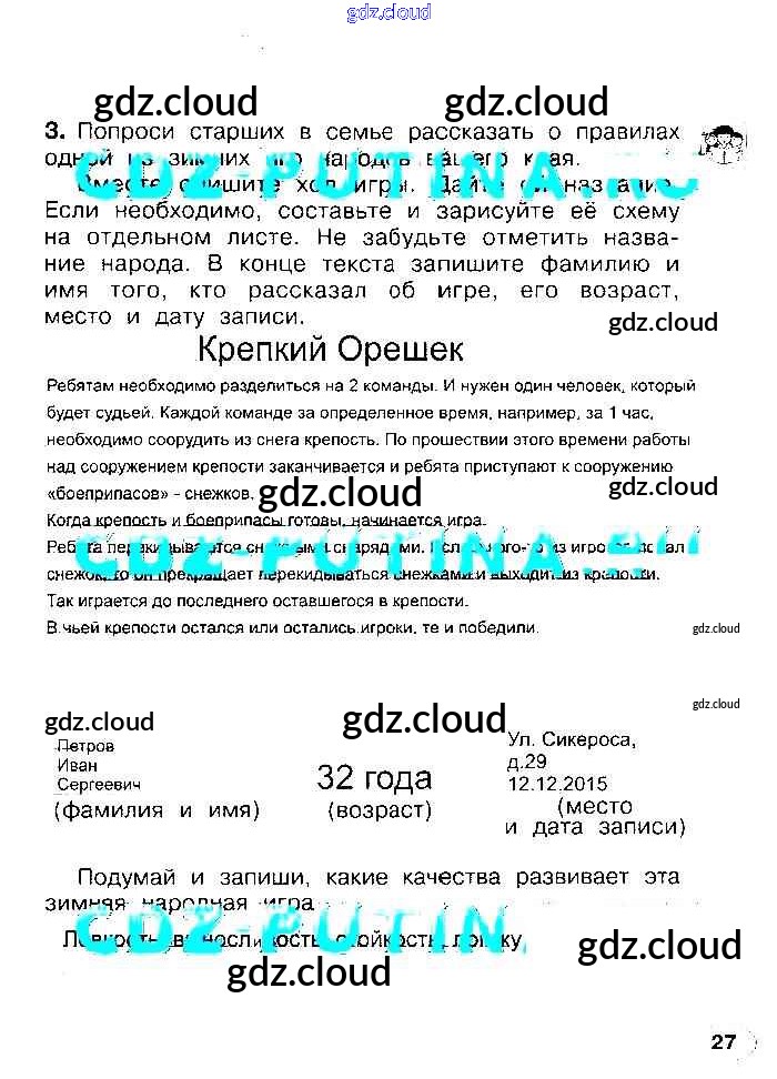 Ответ на задание 26-27 Рабочая тетрадь Окружающий мир за 2 (второй) класс Плешаков, Новицкая Перспектива 2017 Часть 1, 2