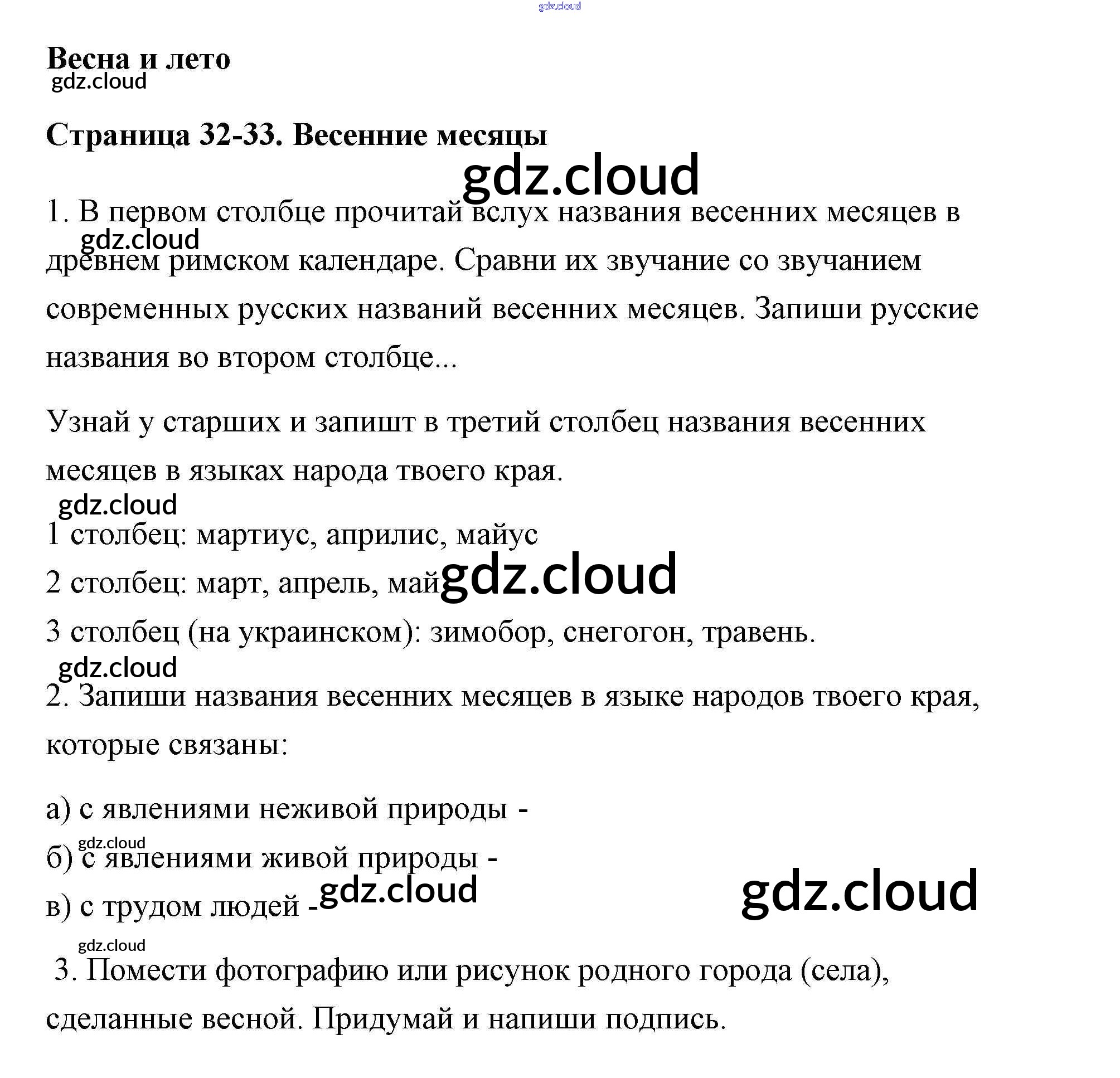 Ответ на задание 32-33 Рабочая тетрадь Окружающий мир за 2 (второй) класс Плешаков, Новицкая Перспектива 2017 Часть 1, 2