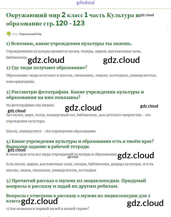 Страницы Ответы к части 1 по Окружающему миру 2 класс Учебник Плешаков Часть 1, 2 Просвещение