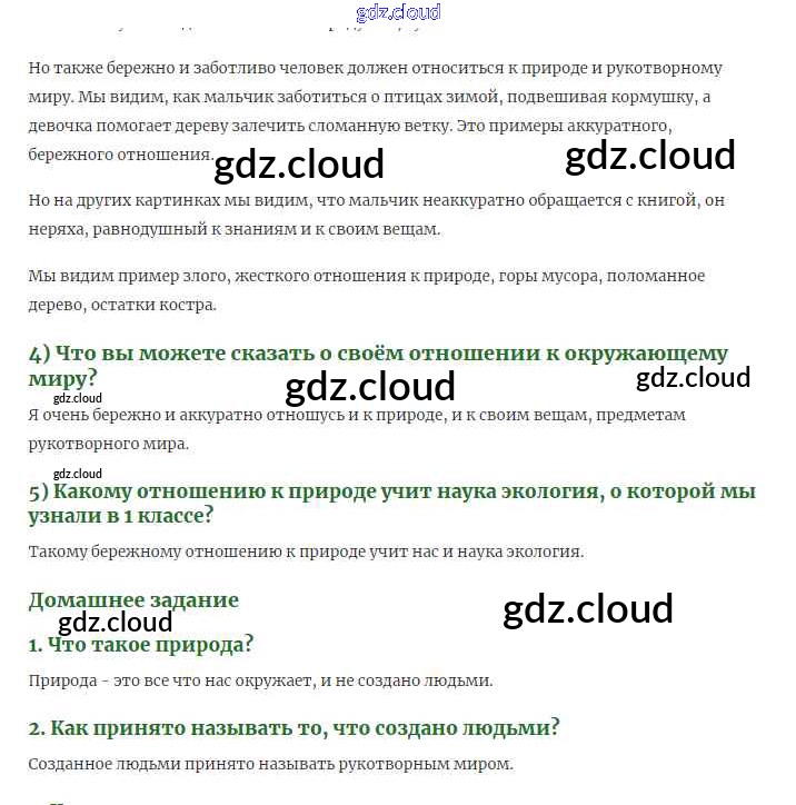 Страницы Ответы к части 1 по Окружающему миру 2 класс Учебник Плешаков Часть 1, 2 Просвещение