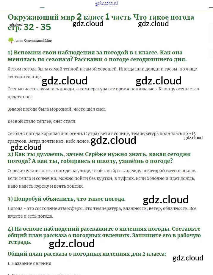 Ответ на задание 32 Учебник Окружающий мир за 2 (второй) класс Плешаков 2017 Часть 1, 2