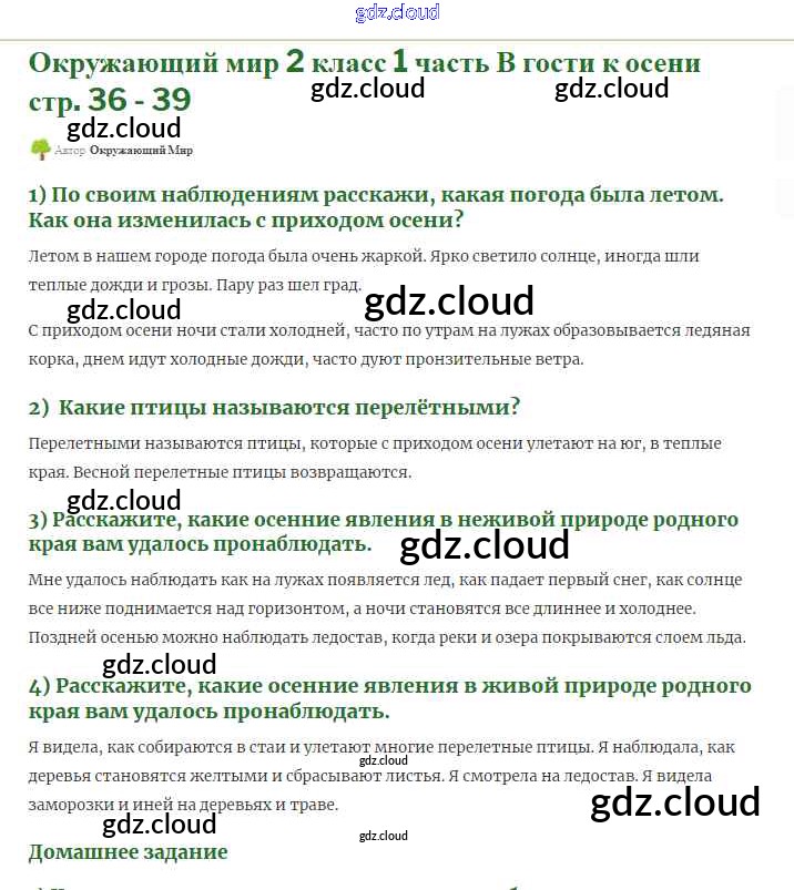 Страницы Ответы к части 1 по Окружающему миру 2 класс Учебник Плешаков Часть 1, 2 Просвещение