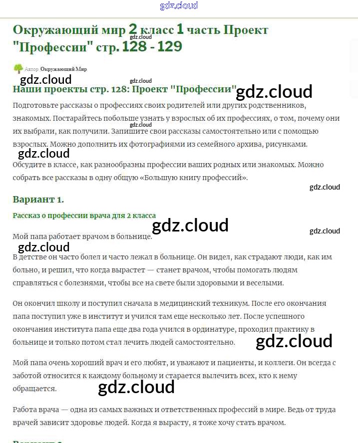Профессии (страница 128) Ответы к части 1 по Окружающему миру 2 класс Учебник Плешаков Часть 1, 2 Просвещение