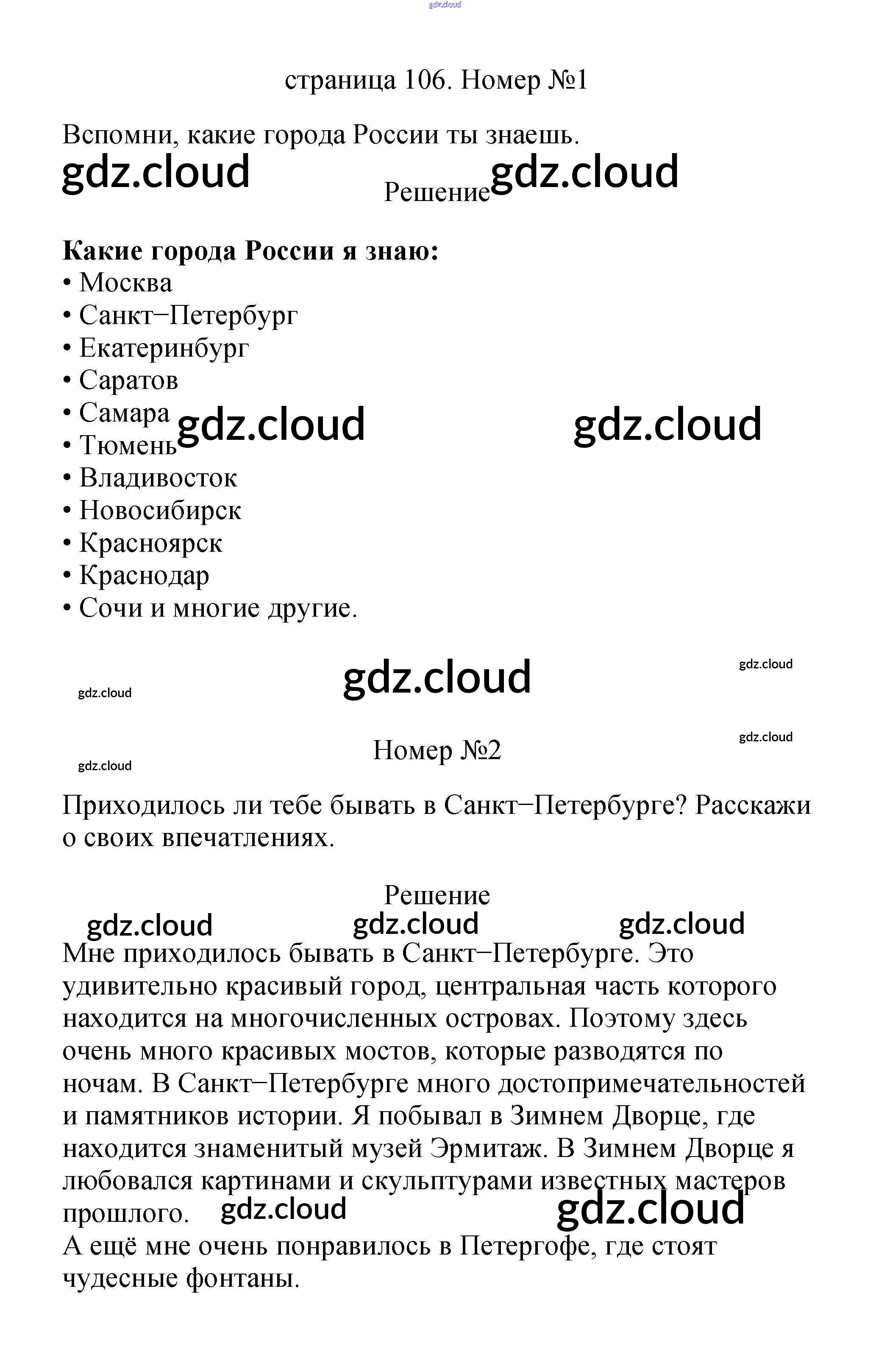 Ответ на задание 106 Учебник Окружающий мир за 2 (второй) класс Плешаков 2017 Часть 1, 2