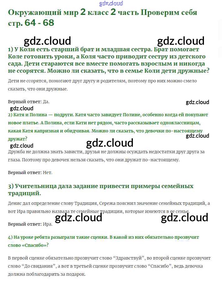 Ответ на задание 64 Учебник Окружающий мир за 2 (второй) класс Плешаков 2017 Часть 1, 2