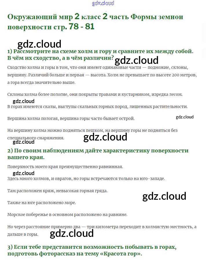 Ответ на задание 78 Учебник Окружающий мир за 2 (второй) класс Плешаков 2017 Часть 1, 2 ФГОС онлайн и без номера телефона.