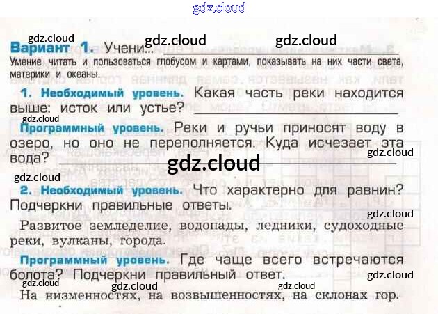 Ответ на задание Вариант 1 Проверочные и контрольные работы Окружающий мир за 2 (второй) класс Вахрушев, Бурский, Родыгина Школа 2100 2014