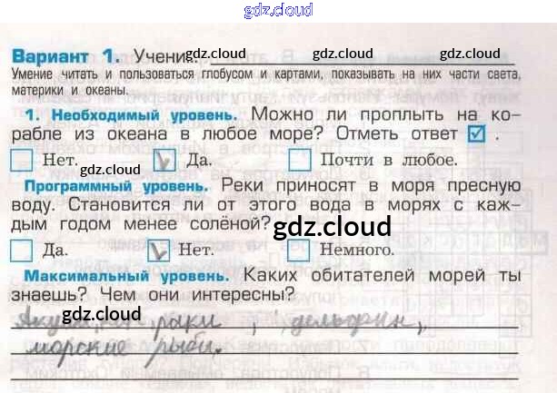 Ответ на задание Вариант 1 Проверочные и контрольные работы Окружающий мир за 2 (второй) класс Вахрушев, Бурский, Родыгина Школа 2100 2014