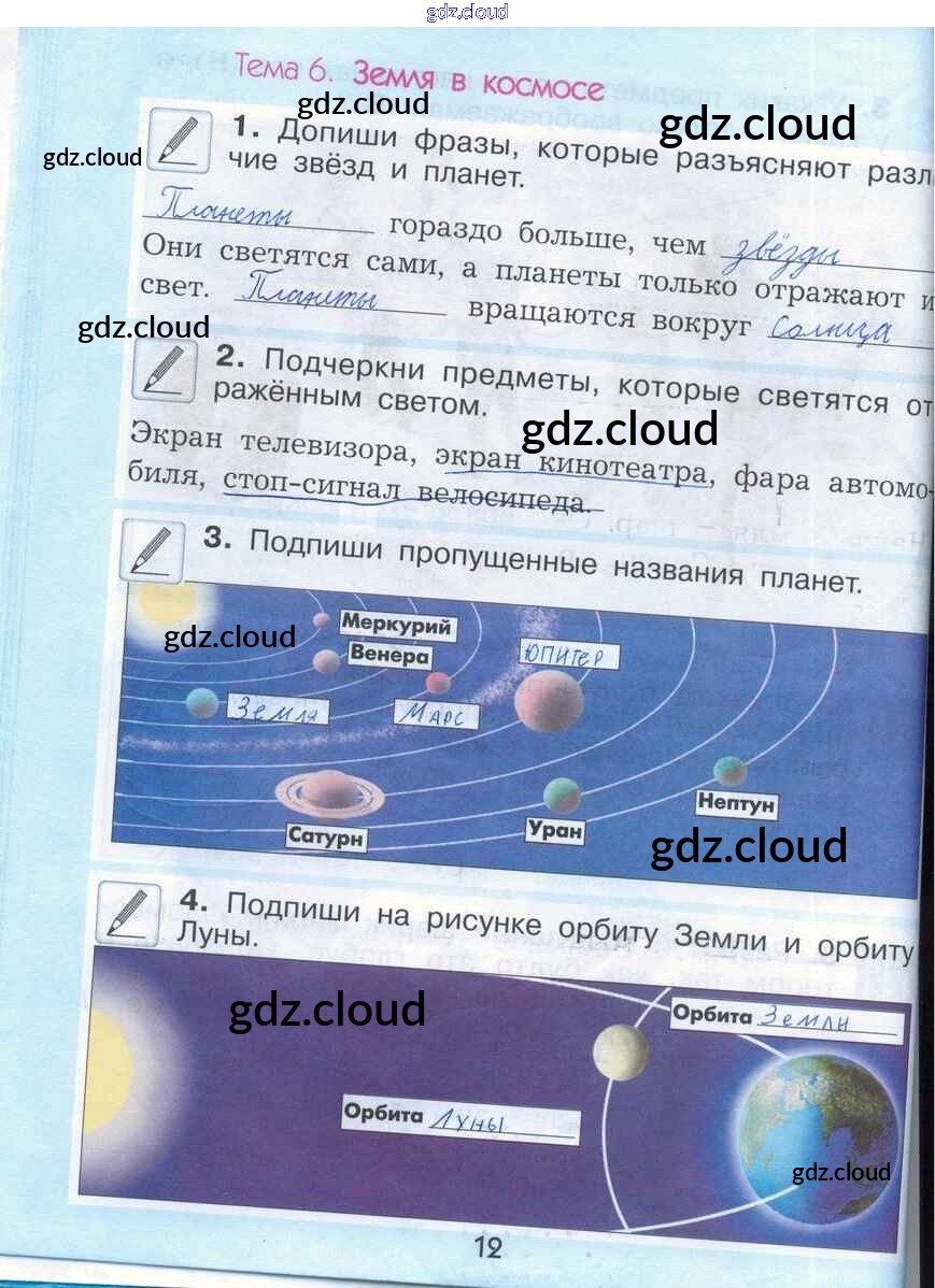 Ответы к теме: 6. Земля в космосе по Окружающему миру 2 класс Рабочая тетрадь Вахрушев Школа 2100 Баласс