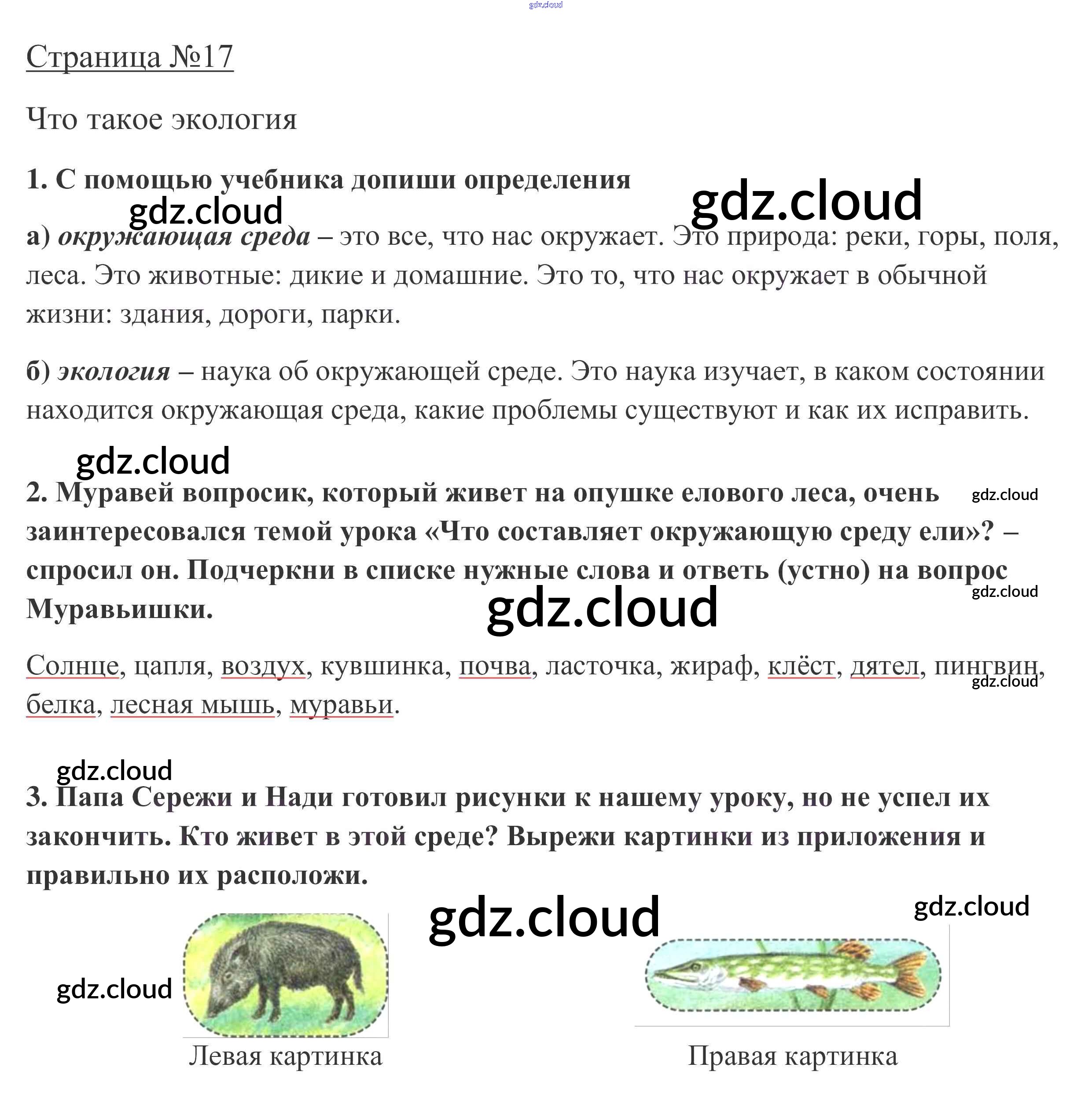 Ответ на задание 17 Рабочая тетрадь Окружающий мир за 3 (третий) класс Плешаков Школа России 2017 Часть 1, 2