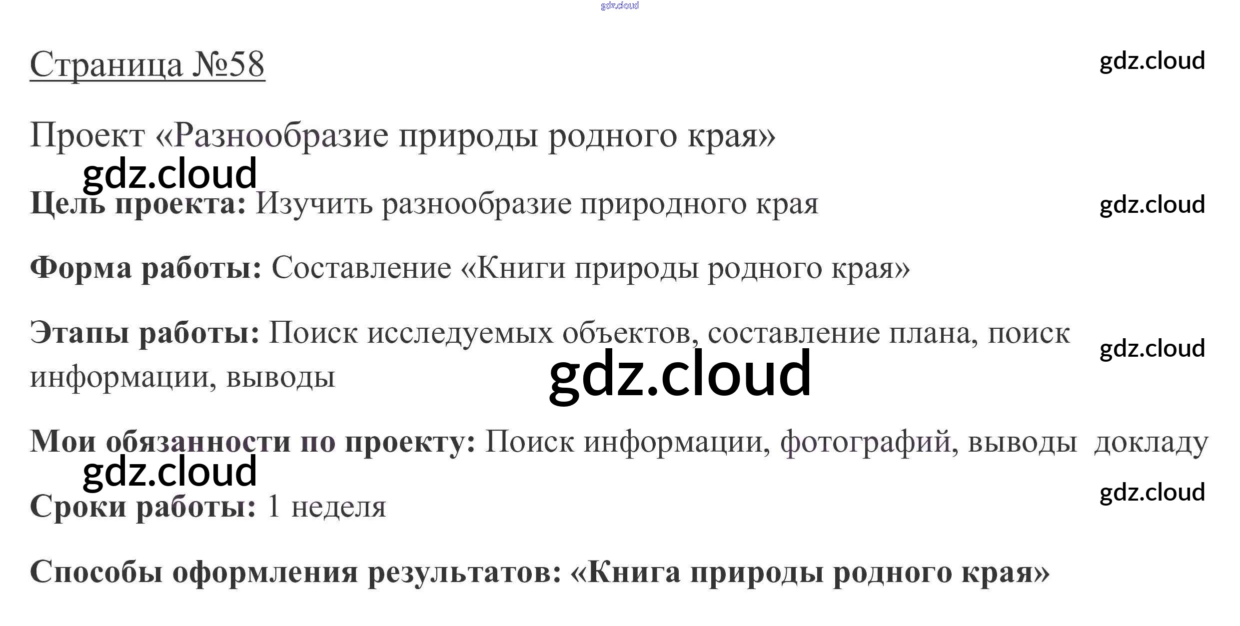 Ответ на задание 58 Рабочая тетрадь Окружающий мир за 3 (третий) класс Плешаков Школа России 2017 Часть 1, 2