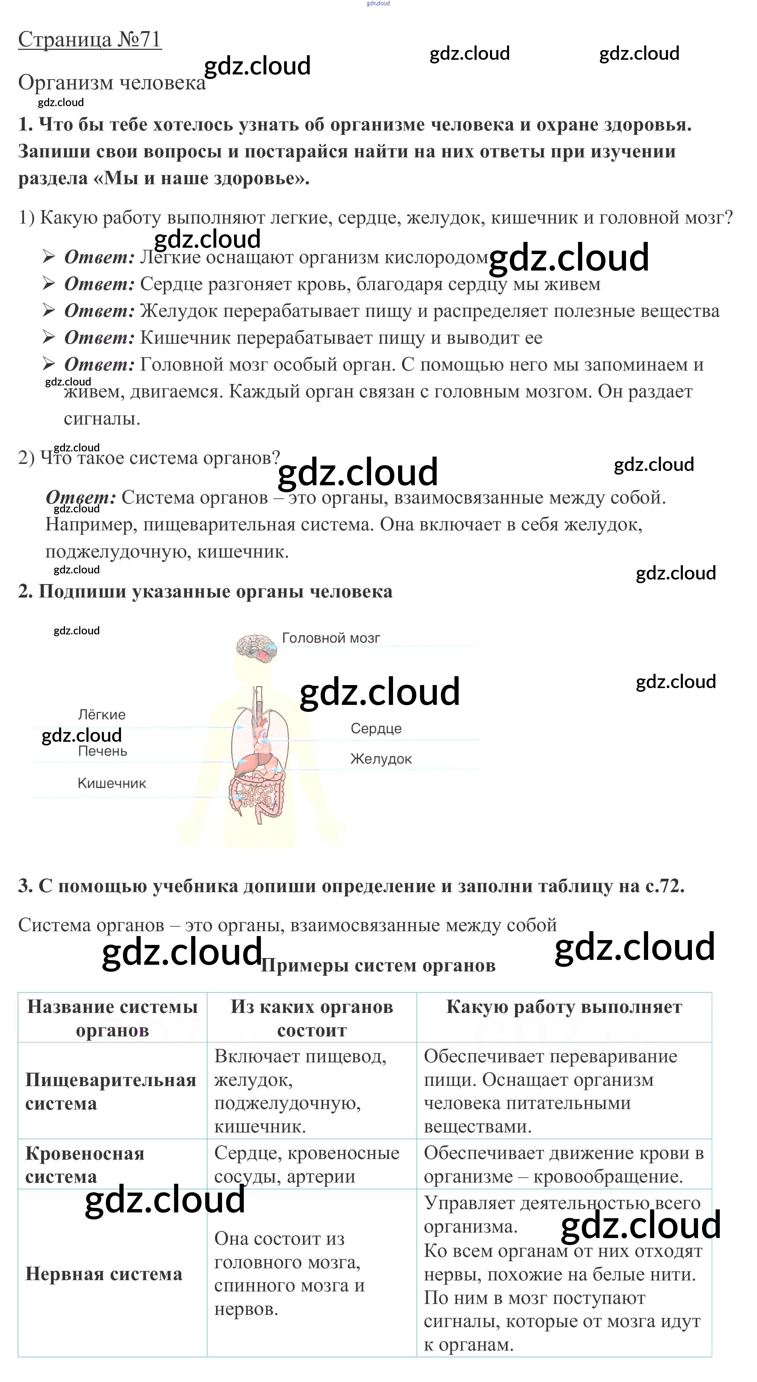 Ответ на задание 71 Рабочая тетрадь Окружающий мир за 3 (третий) класс Плешаков Школа России 2017 Часть 1, 2
