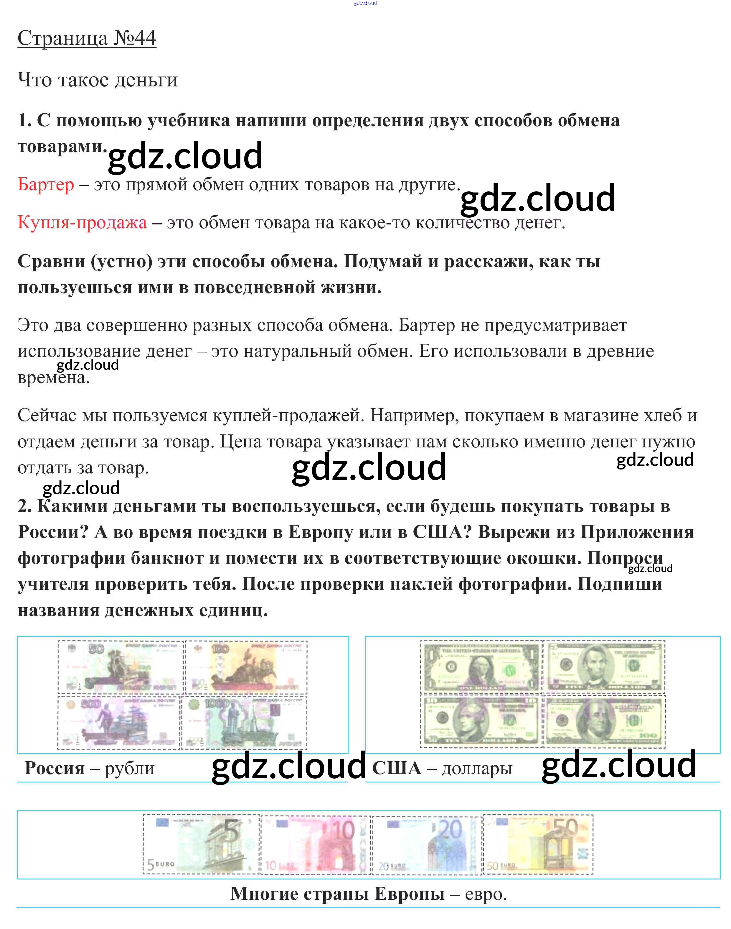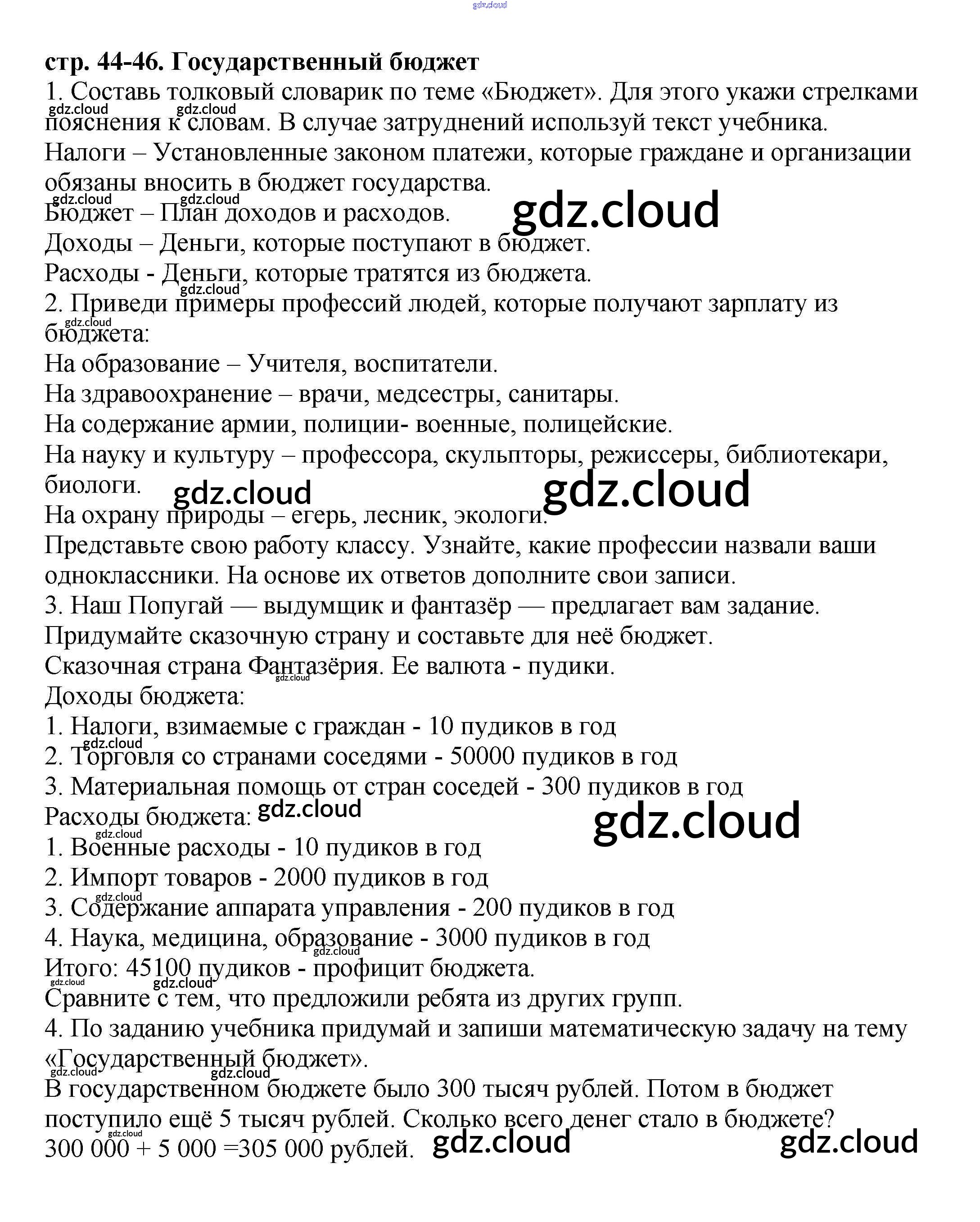Ответ на задание 44 Рабочая тетрадь Окружающий мир за 3 (третий) класс Плешаков Школа России 2017 Часть 1, 2