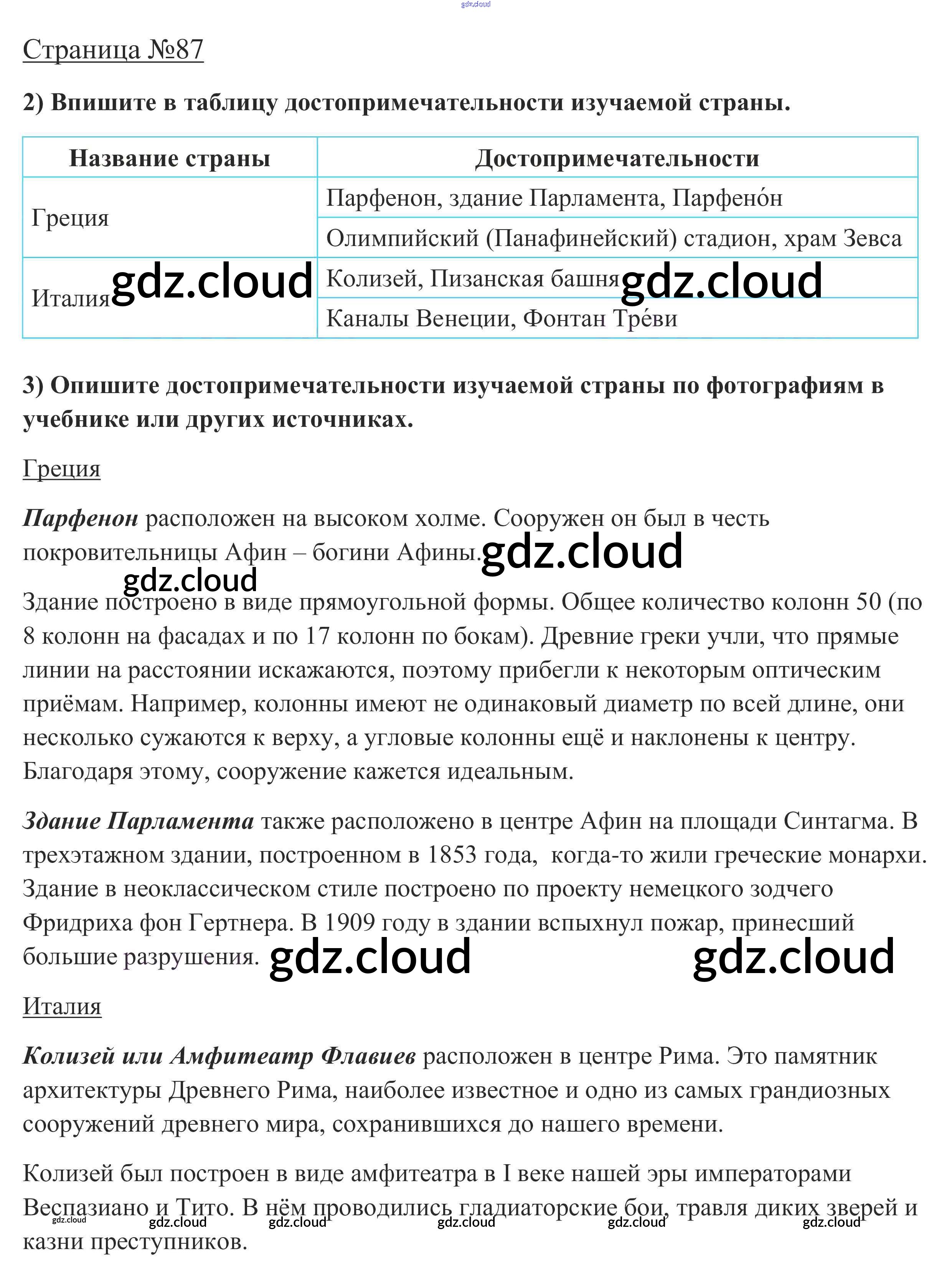 Ответ на задание 87 Рабочая тетрадь Окружающий мир за 3 (третий) класс Плешаков Школа России 2017 Часть 1, 2