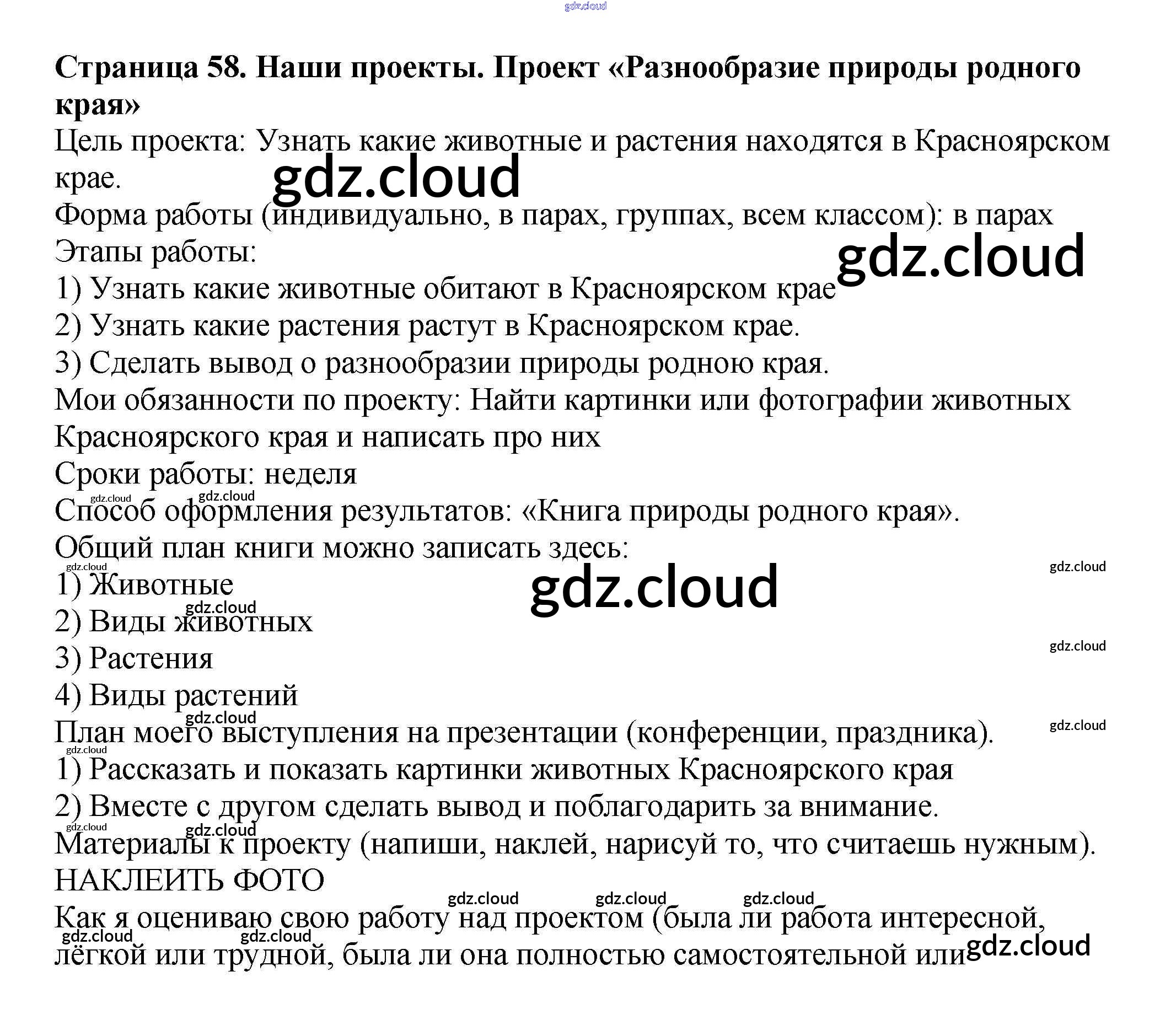 Ответ на задание 58 Рабочая тетрадь Окружающий мир за 3 (третий) класс Плешаков, Новицкая Перспектива 2013 Часть 1, 2