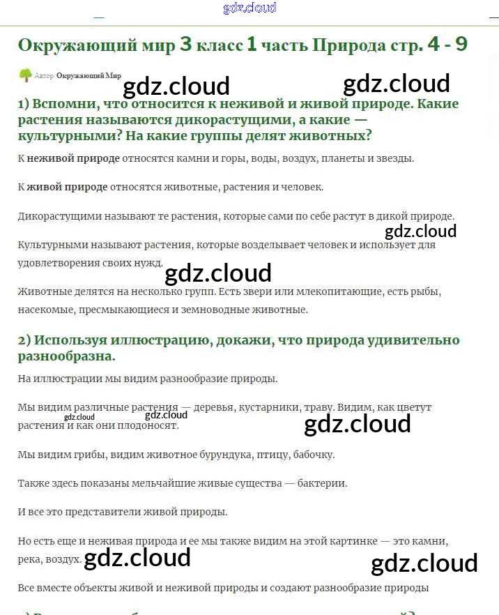 Как устроен мир Ответы к части 1 по Окружающему миру 3 класс Учебник Плешаков Школа России Часть 1, 2 Просвещение