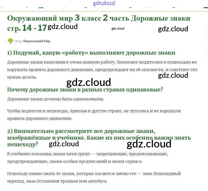 Ответ на задание 14 Учебник Окружающий мир за 3 (третий) класс Плешаков Школа России 2017 Часть 1, 2