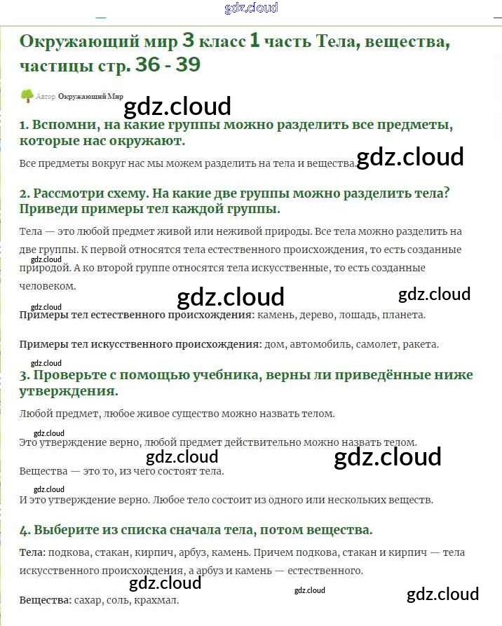 Ответ на задание 36 Учебник Окружающий мир за 3 (третий) класс Плешаков Школа России 2017 Часть 1, 2