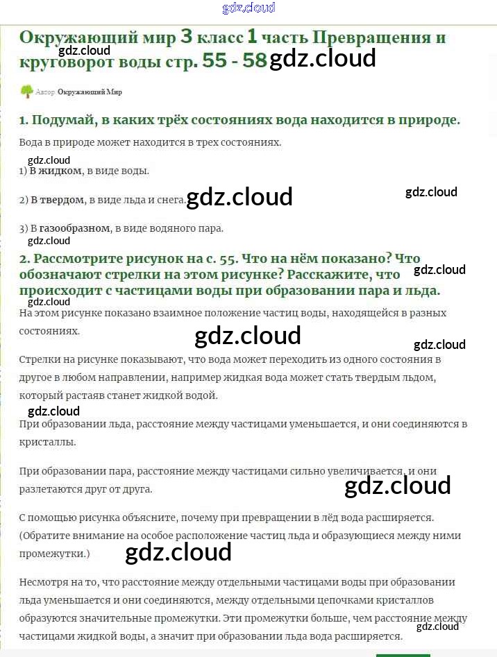 Ответ на задание 55 Учебник Окружающий мир за 3 (третий) класс Плешаков Школа России 2017 Часть 1, 2