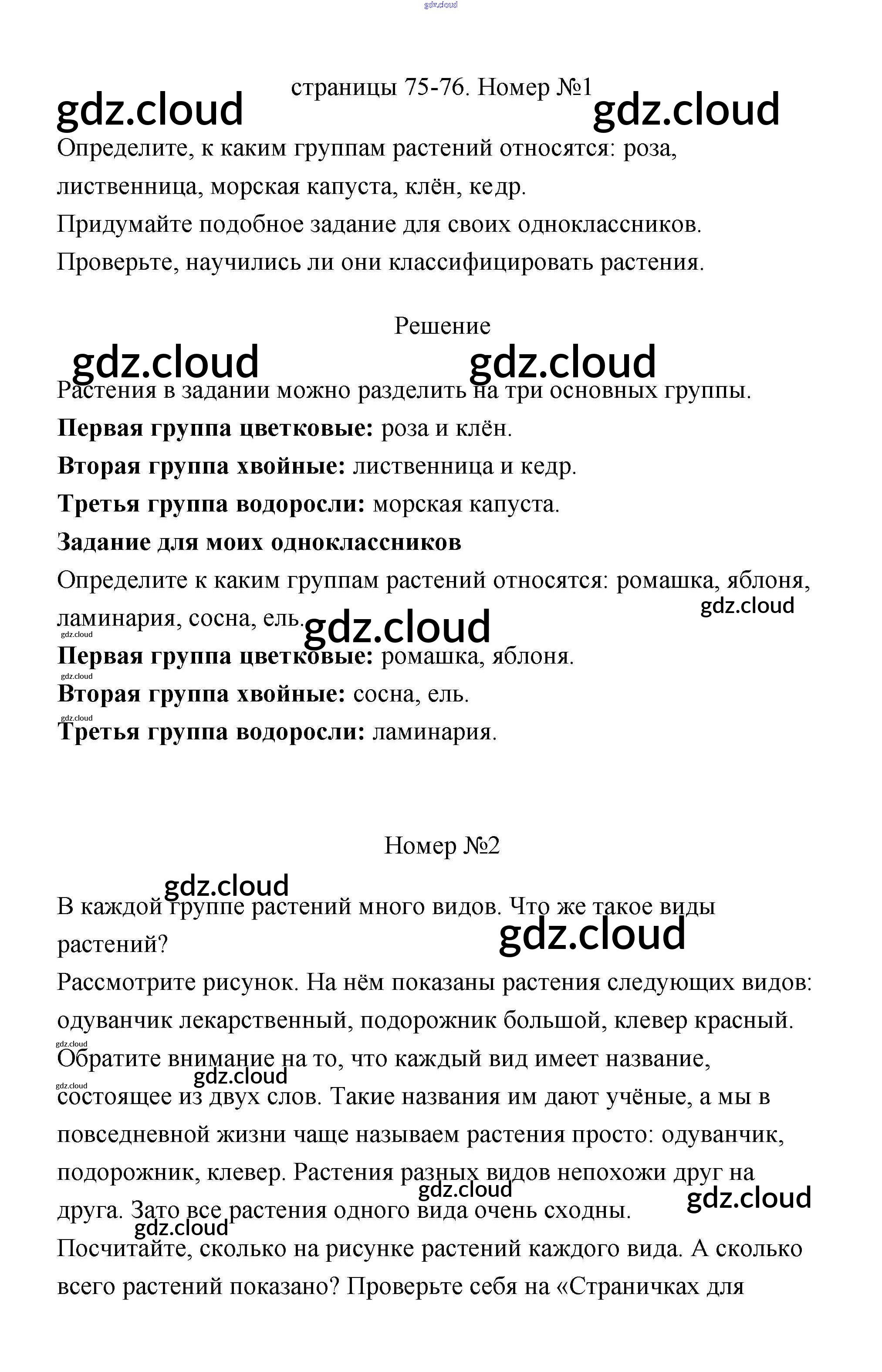 Ответ на задание 75 Учебник Окружающий мир за 3 (третий) класс Плешаков Школа России 2017 Часть 1, 2