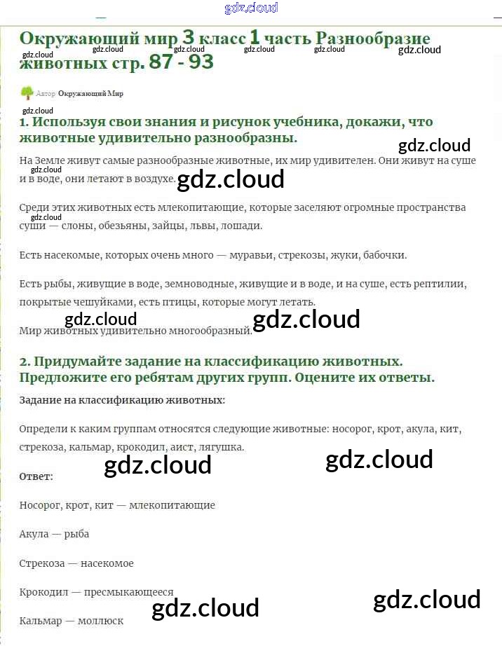 Ответ на задание 87 Учебник Окружающий мир за 3 (третий) класс Плешаков Школа России 2017 Часть 1, 2