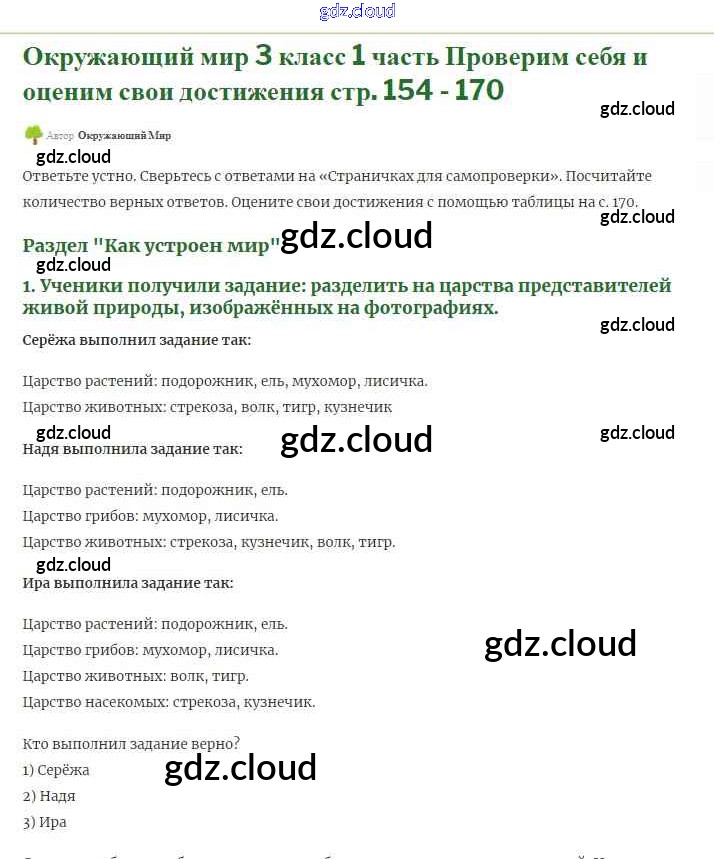 Ответ на задание 154 Учебник Окружающий мир за 3 (третий) класс Плешаков Школа России 2017 Часть 1, 2