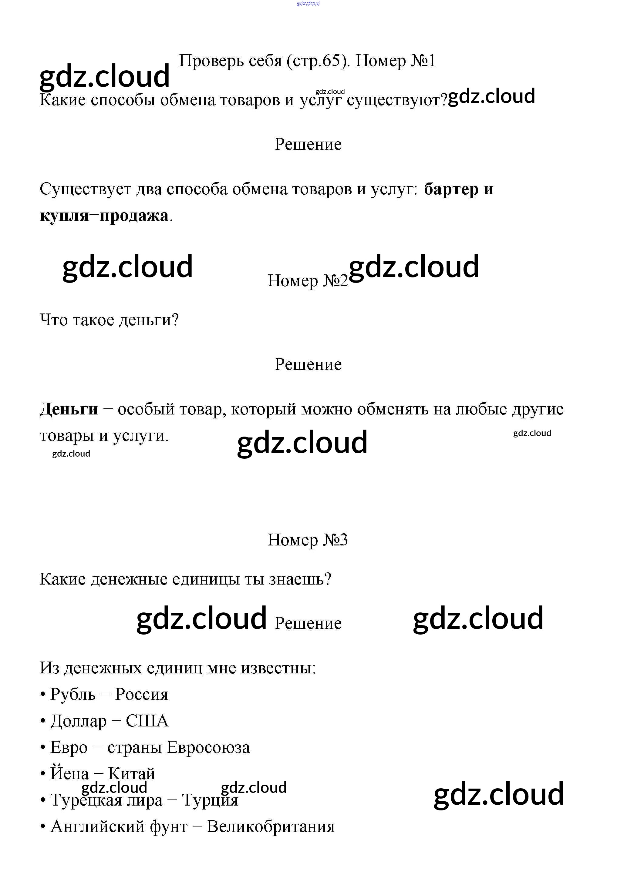Ответ на задание 65 Учебник Окружающий мир за 3 (третий) класс Плешаков Школа России 2017 Часть 1, 2