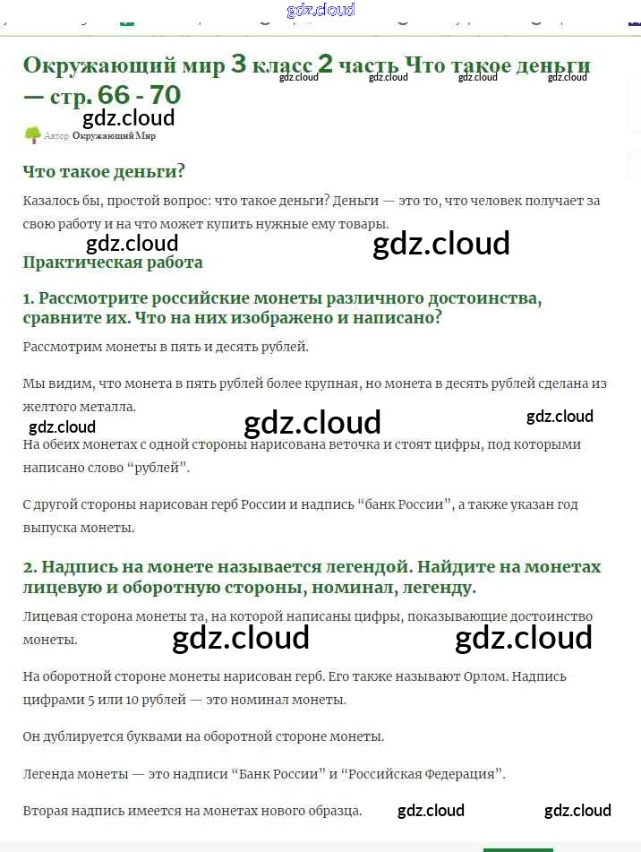 Ответ на задание 66 Учебник Окружающий мир за 3 (третий) класс Плешаков Школа России 2017 Часть 1, 2
