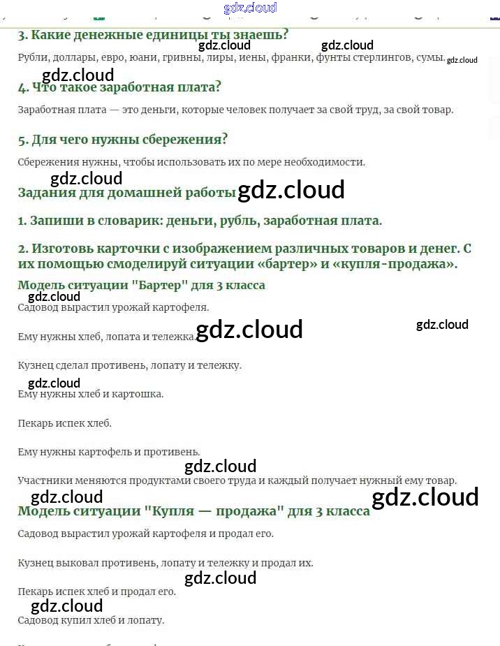 Чему учит экономика Ответы к части 2 по Окружающему миру 3 класс Учебник Плешаков Школа России Часть 1, 2 Просвещение
