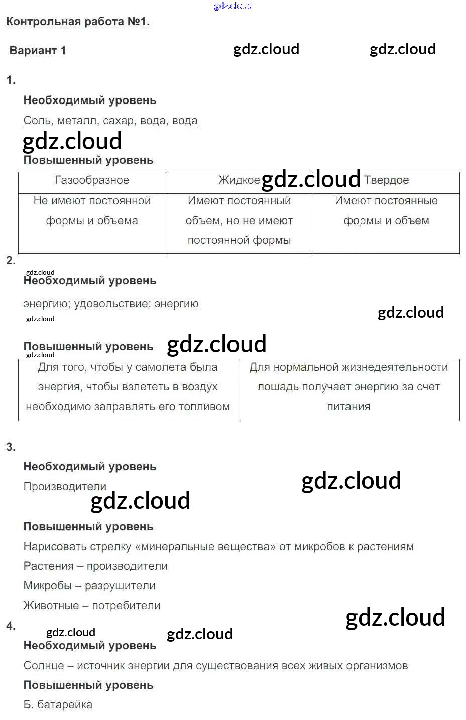 Ответы к КР №1 (варианты) по Окружающему миру 3 класс Проверочные и контрольные работы Вахрушев Школа 2100 Баласс