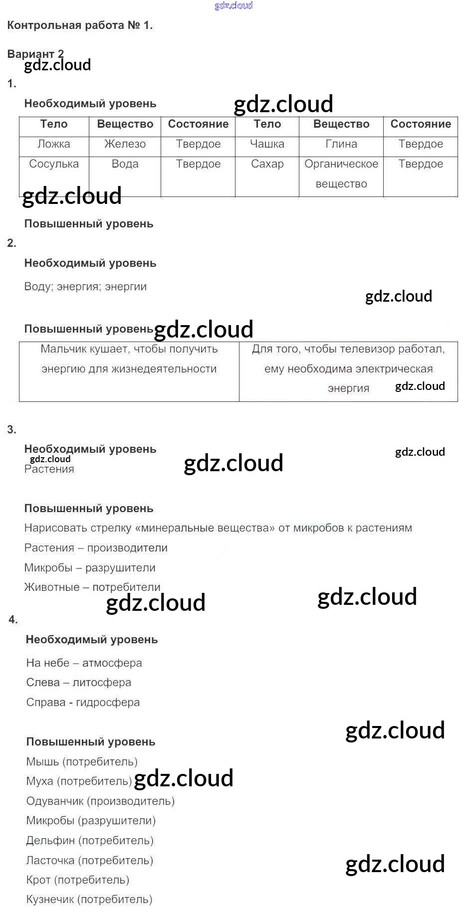 Ответы к КР №1 (варианты) по Окружающему миру 3 класс Проверочные и контрольные работы Вахрушев Школа 2100 Баласс