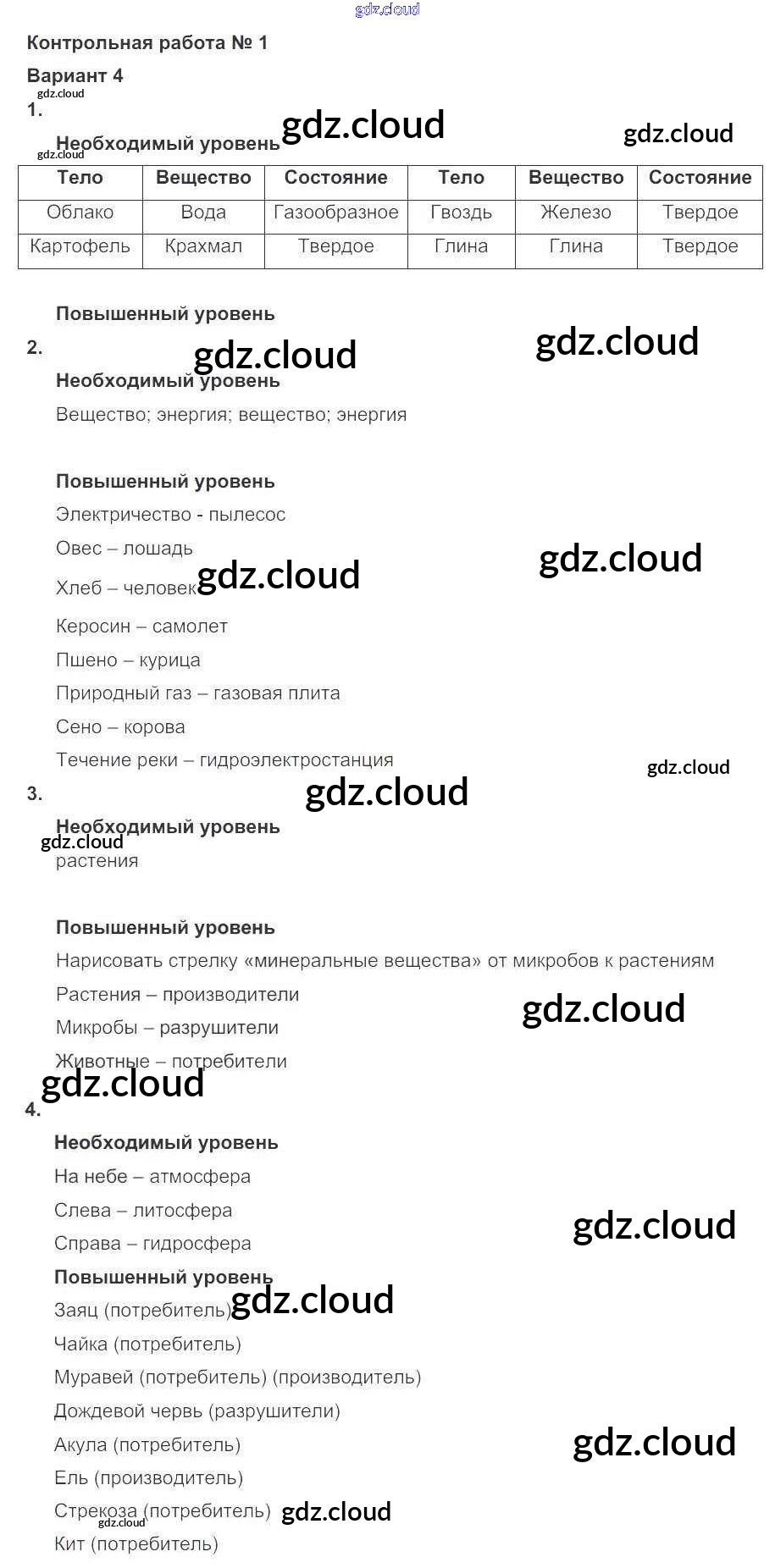 Ответы к КР №1 (варианты) по Окружающему миру 3 класс Проверочные и контрольные работы Вахрушев Школа 2100 Баласс