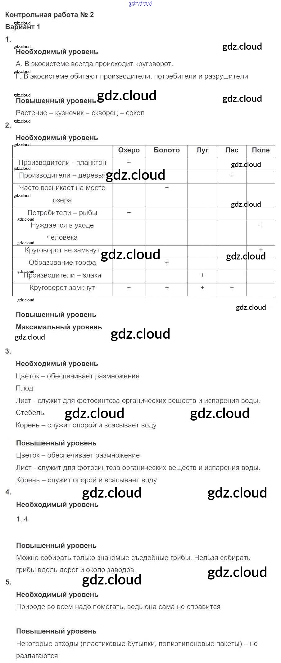 Ответы к КР №2 (варианты) по Окружающему миру 3 класс Проверочные и контрольные работы Вахрушев Школа 2100 Баласс